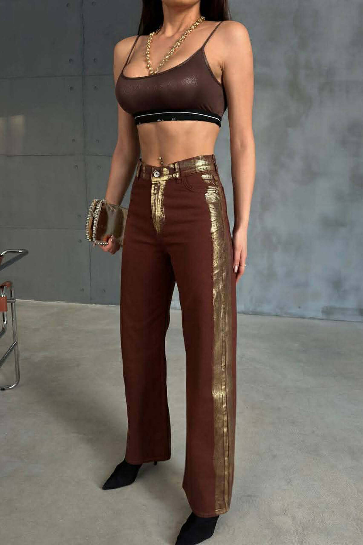 GOLD DETAILS ONE COLOR WOMEN JEANS BROWN/KAFE