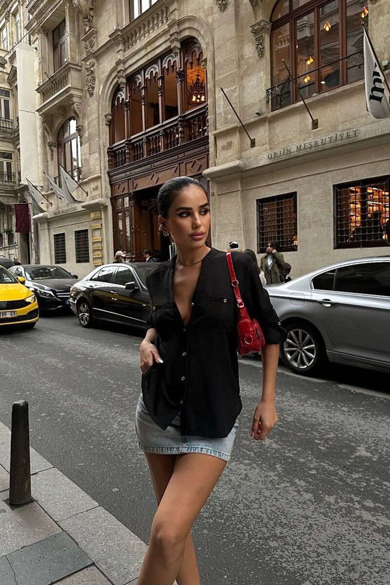 GOLDEN BUTTONS DETAIL ONE COLOR WOMEN SHIRT BLACK/ E ZEZE
