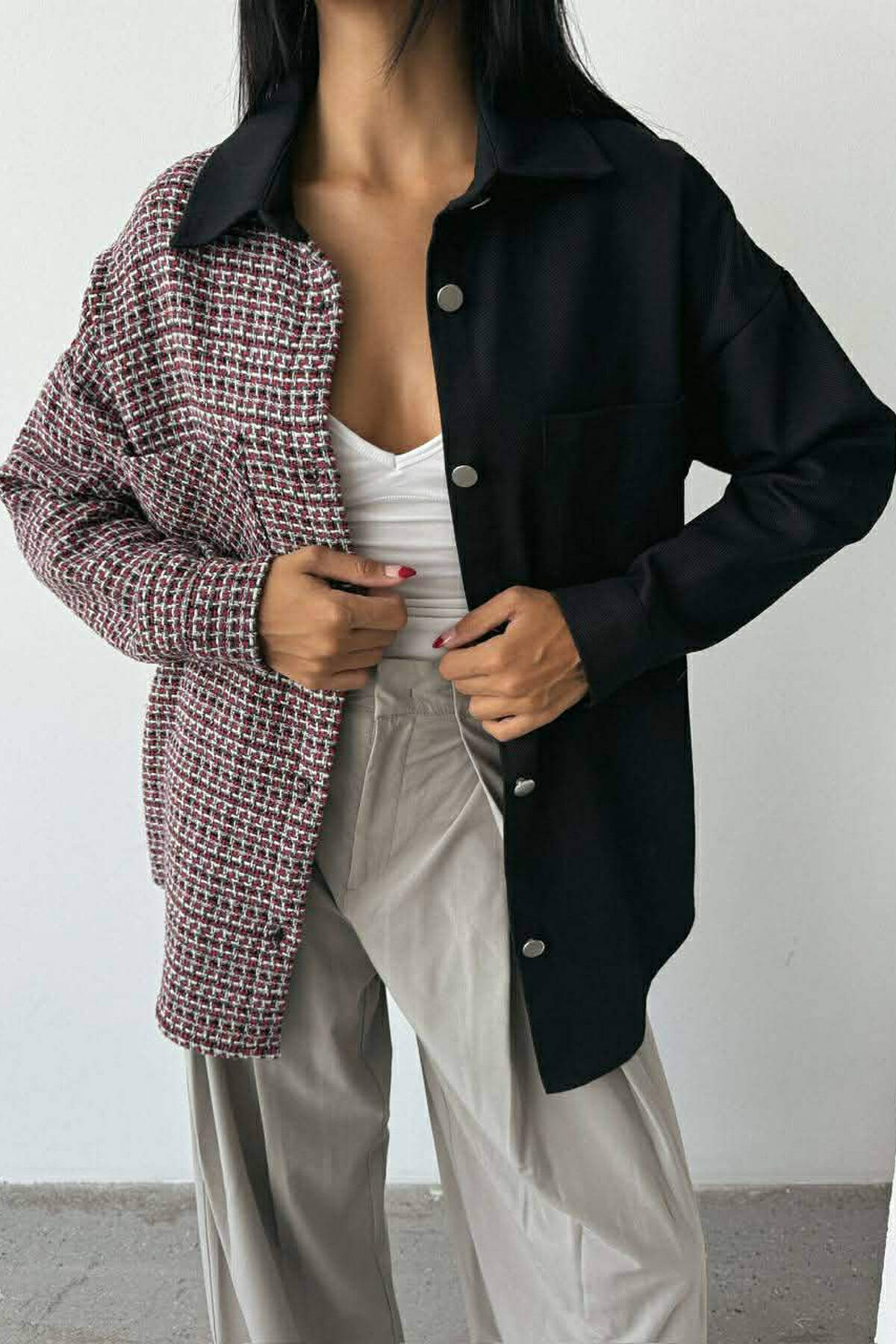 HALF KNITTED HALF DENIM DESIGN WOMEN SHIRT BLACK/ E ZEZE