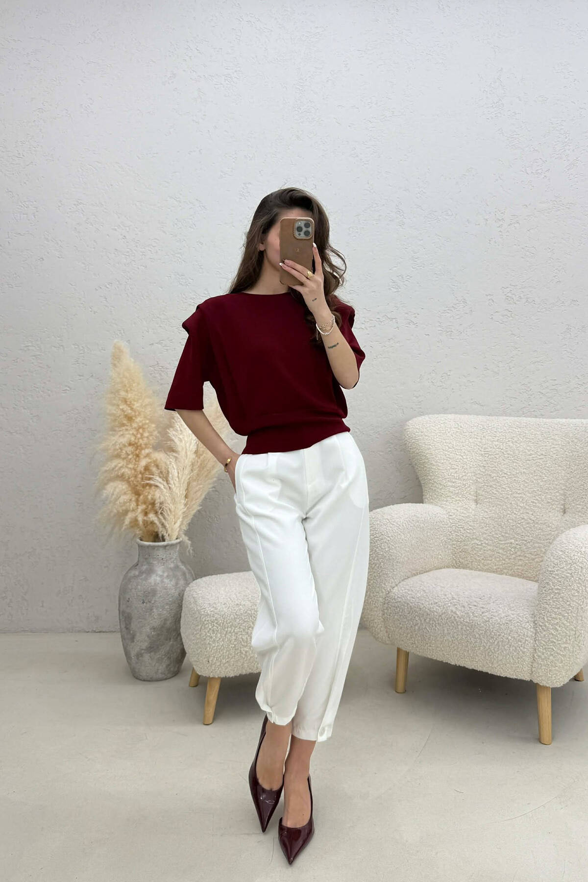 HALF SLEEVES DETAIL ONE COLOR WOMEN SWEATSHIRT BURGUNDY/VISHNJE