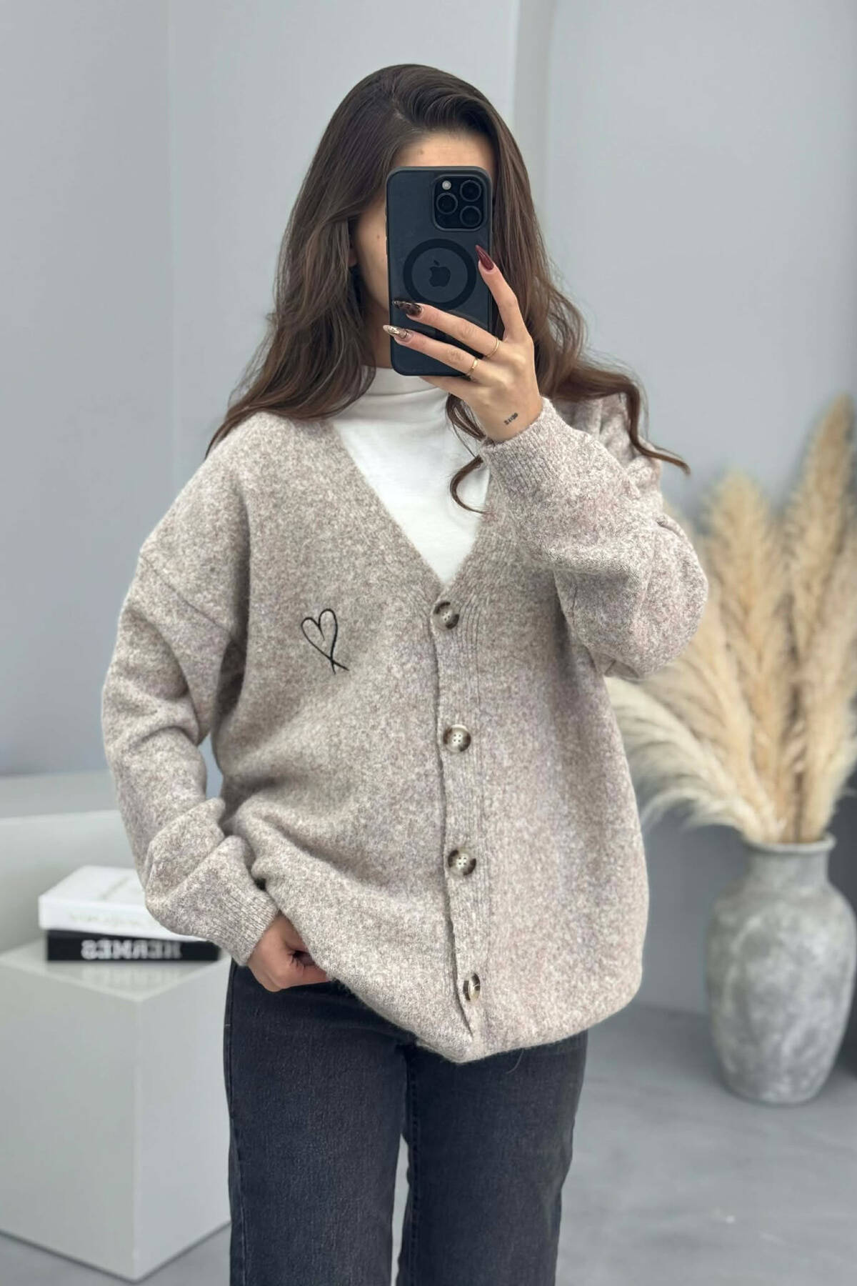 HEART DETAIL SIMPLE WOMEN CARDIGAN BEIGE/BEZHE