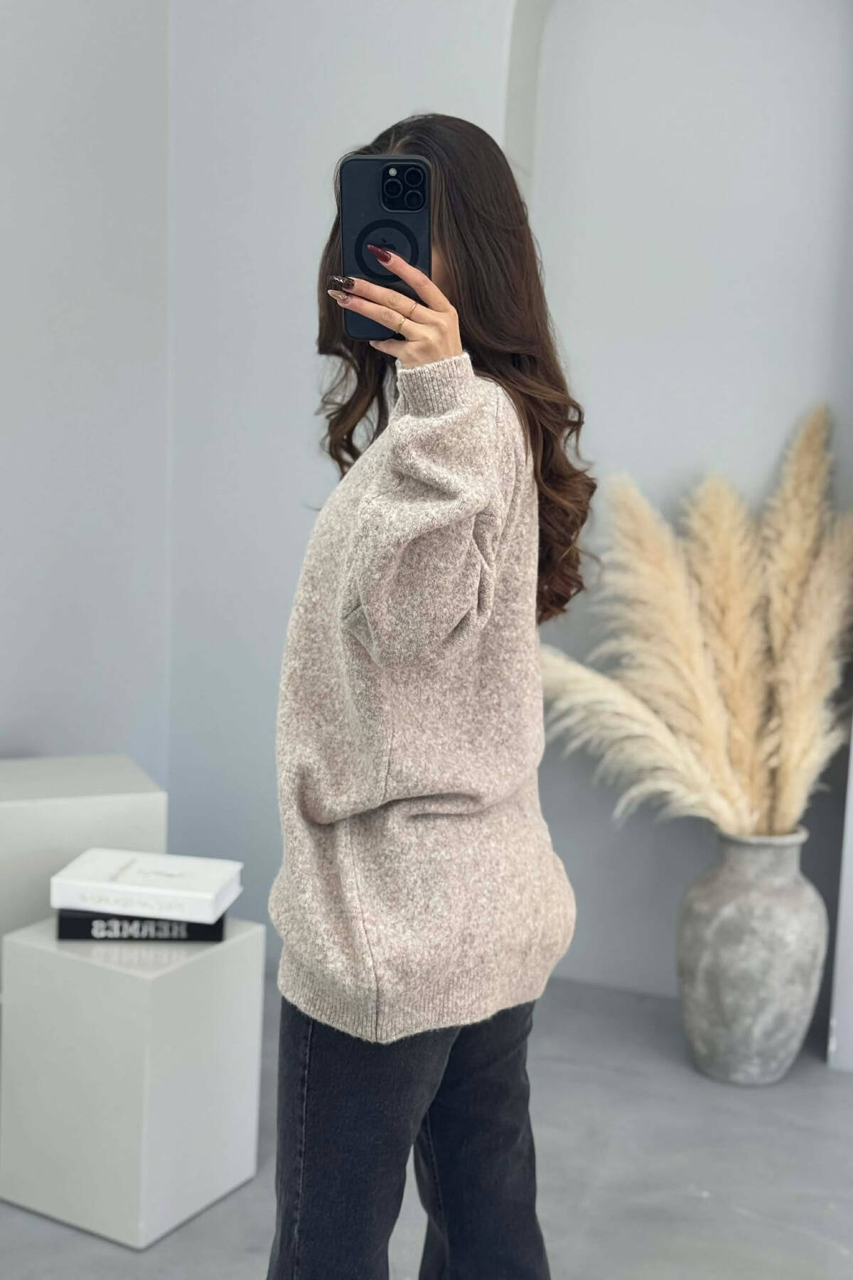BUTTONS DETAIL ONE COLOR WOMEN CARDIGAN BEIGE/BEZHE