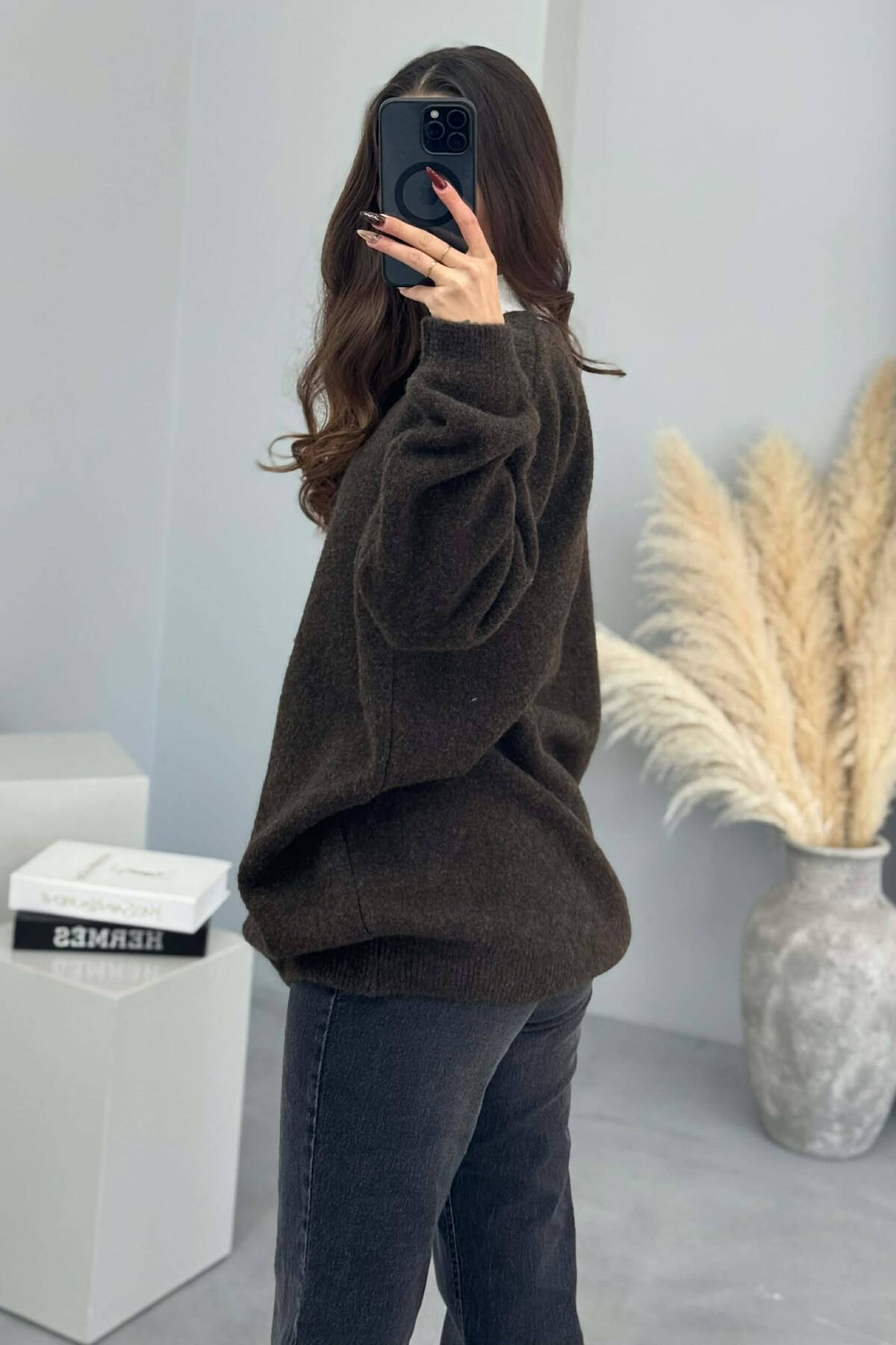 BUTTONS DETAIL ONE COLOR WOMEN CARDIGAN DARK BROWN/KAE