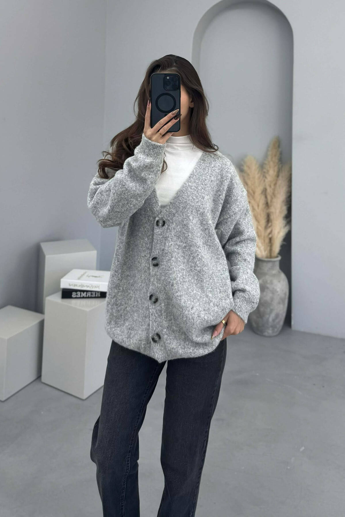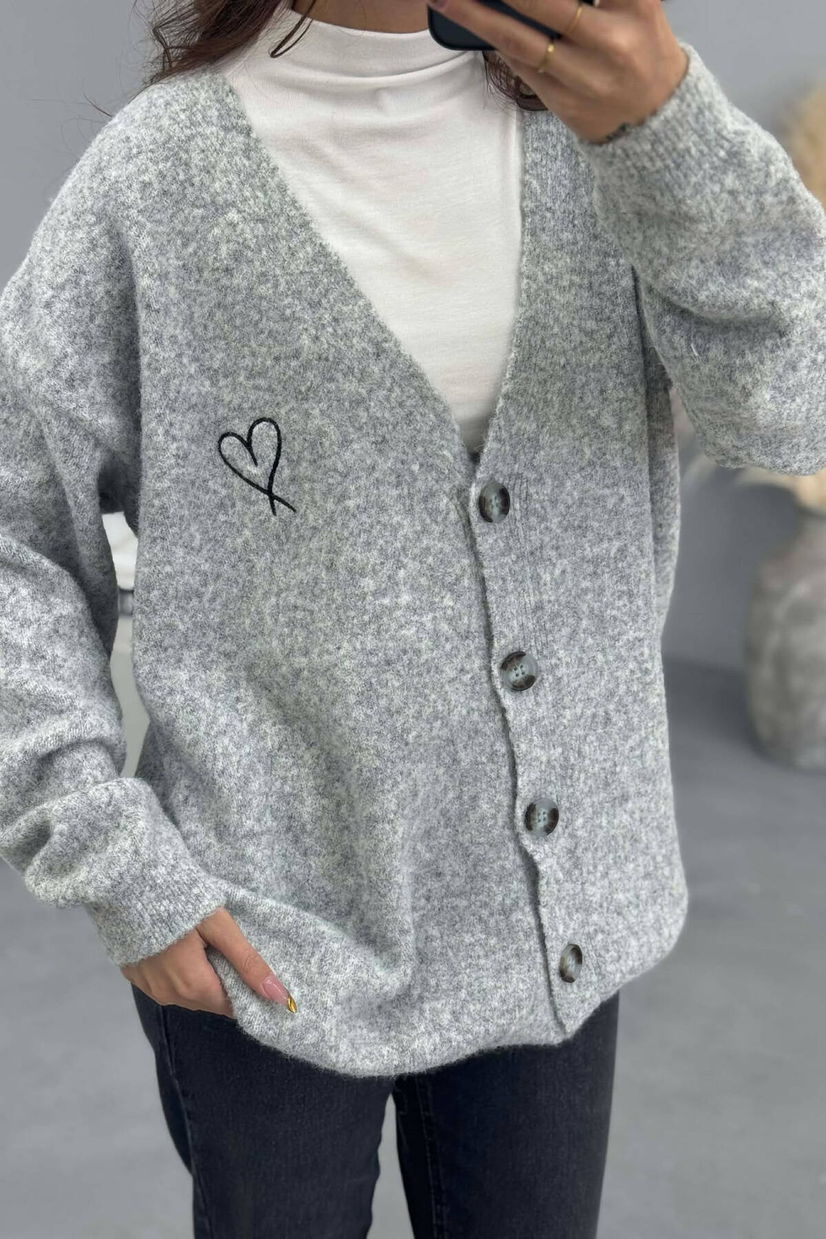 HEART DETAIL SIMPLE WOMEN CARDIGAN LIGHT GREY/GZ