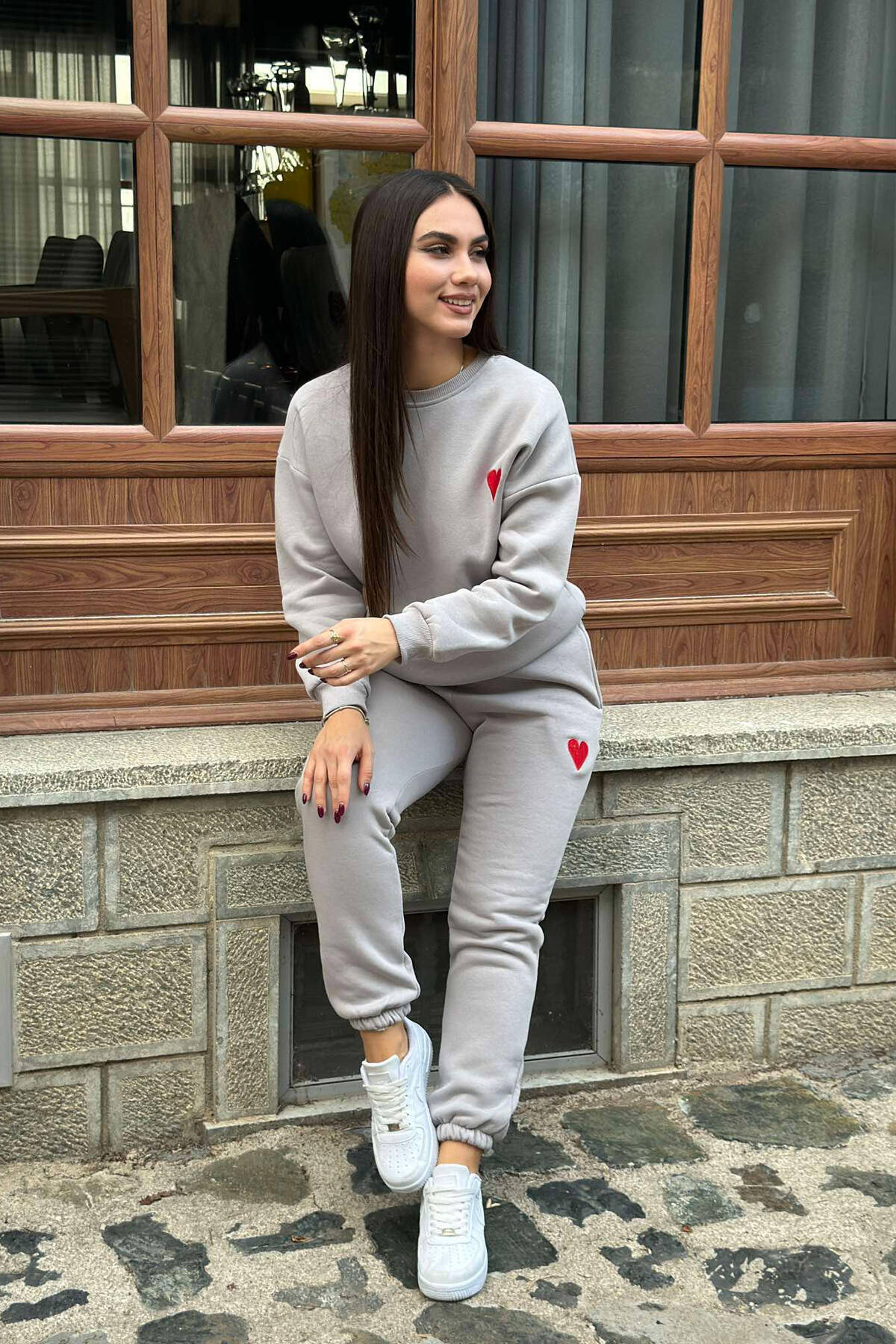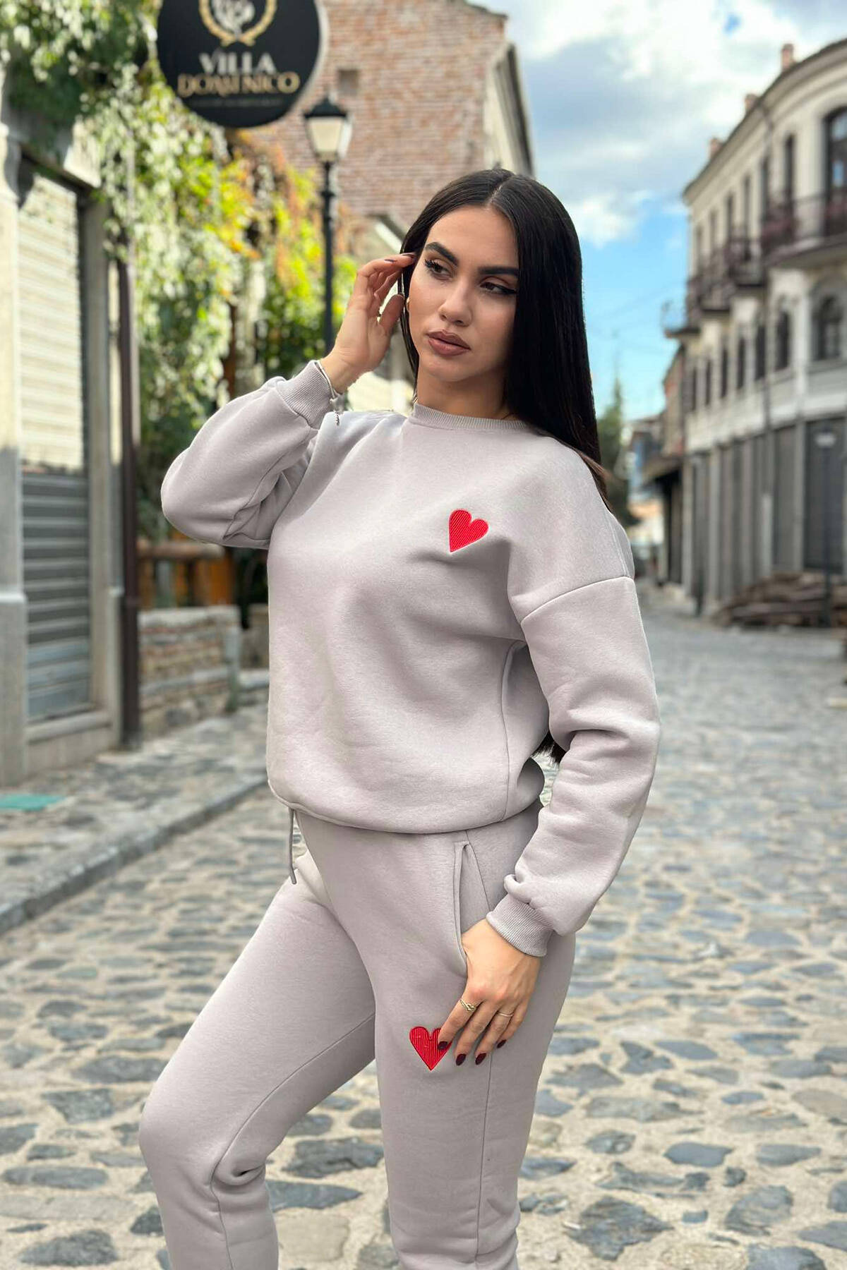 Kostum Bluzë Dhe Tuta Me Logon E Një Zemre Për Femra Në Ngjyrën Gri