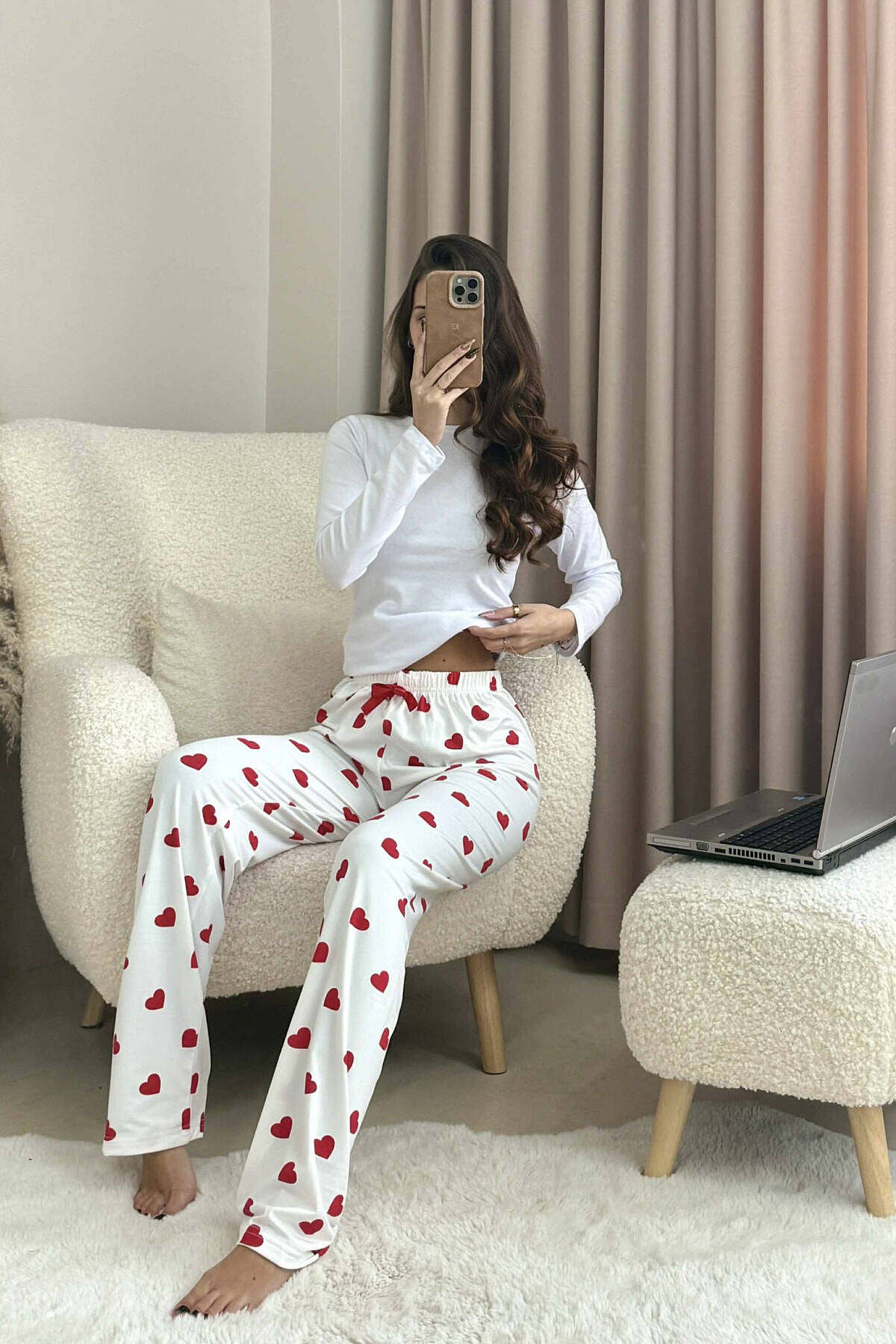 HEARTS DESIGN BOW DETAIL WOMEN JOGGERS WHITE-E BARDHE