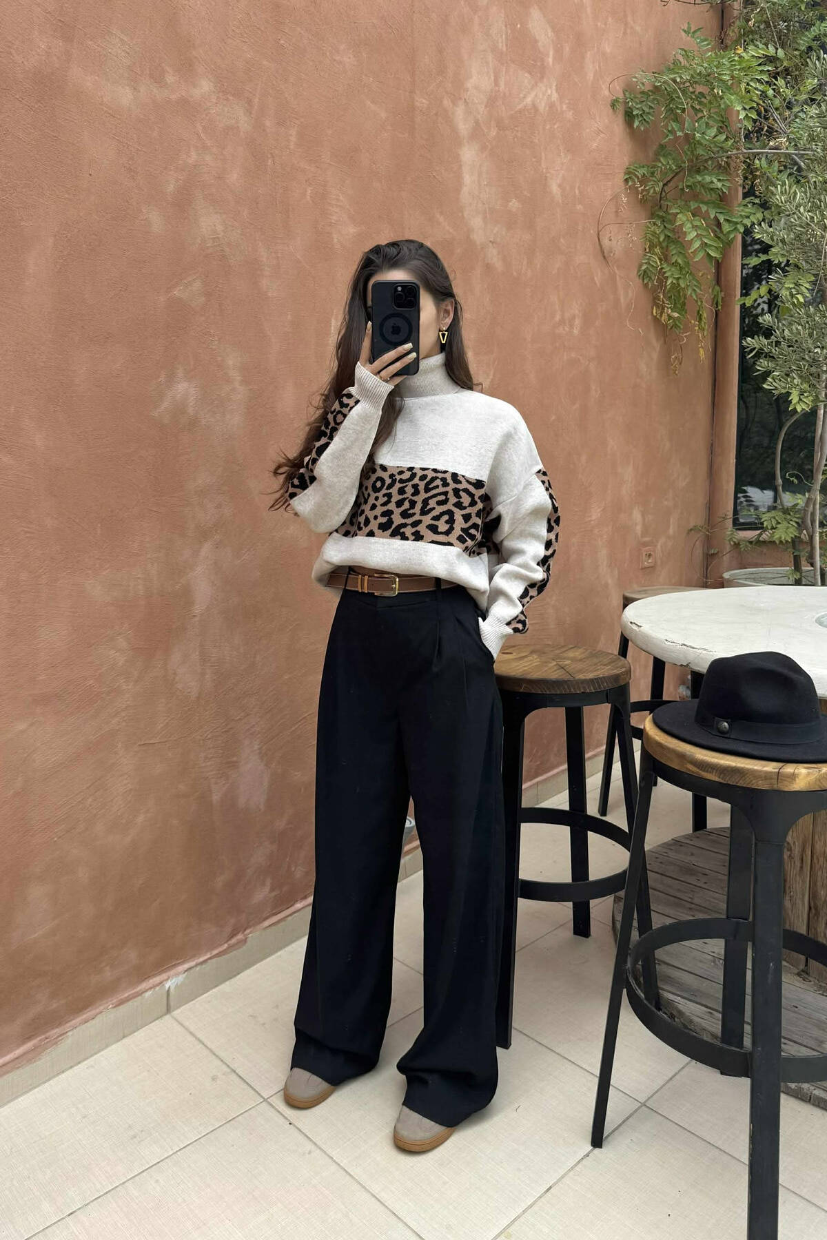 HIGH NECK LEO DESIGN WOMEN SWEATER LIGHT BEIGE/BZHZB
