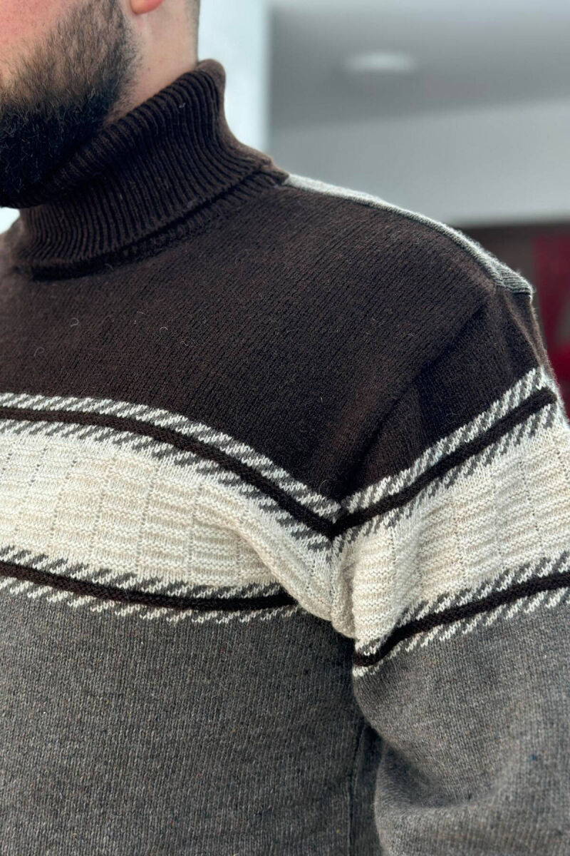 HIGH NECK LINES MAN SWEATER IN BROWN COLOR