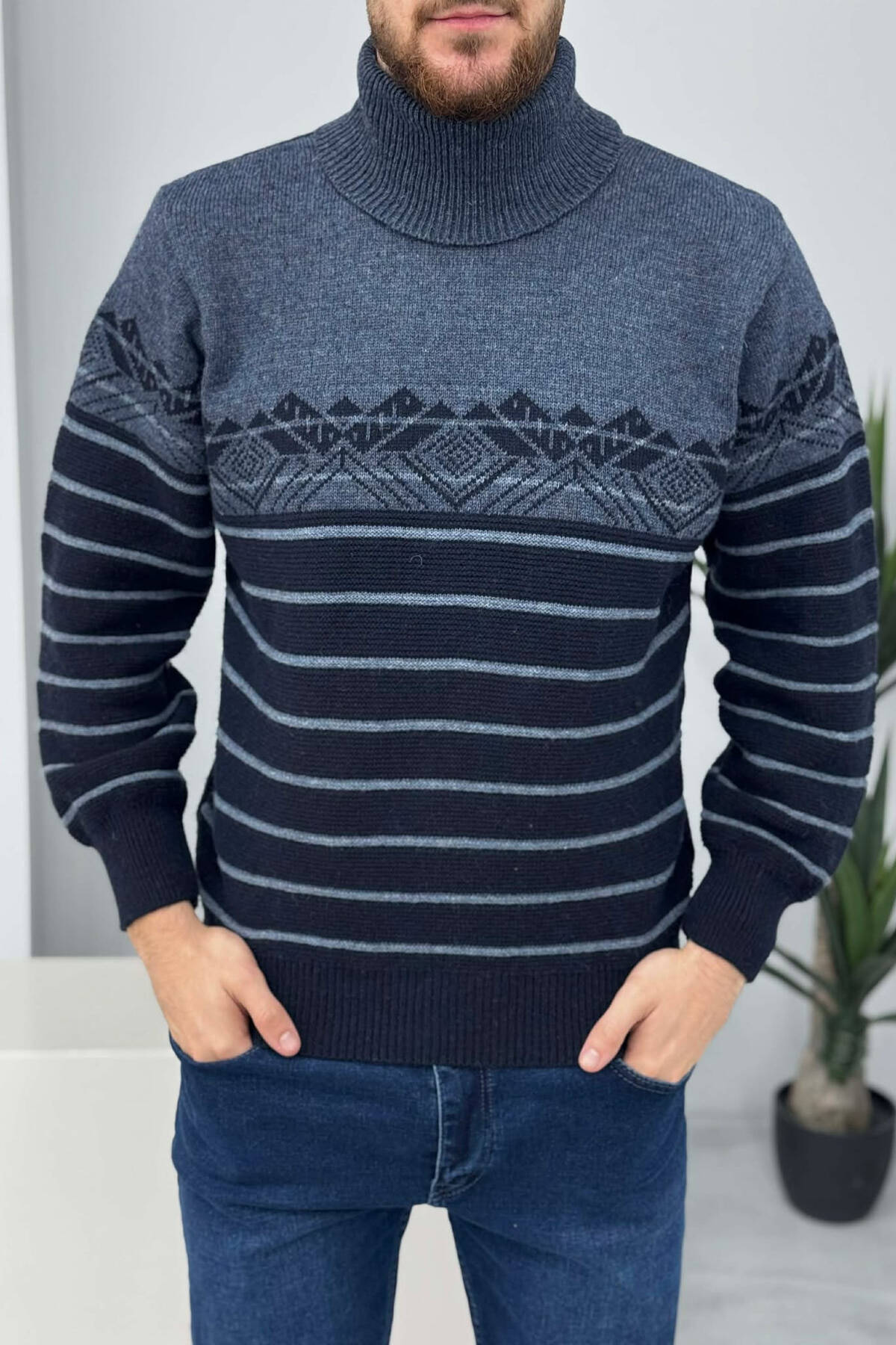 HIGH NECK MEN SWEATER IN DARK BLUE COLOR