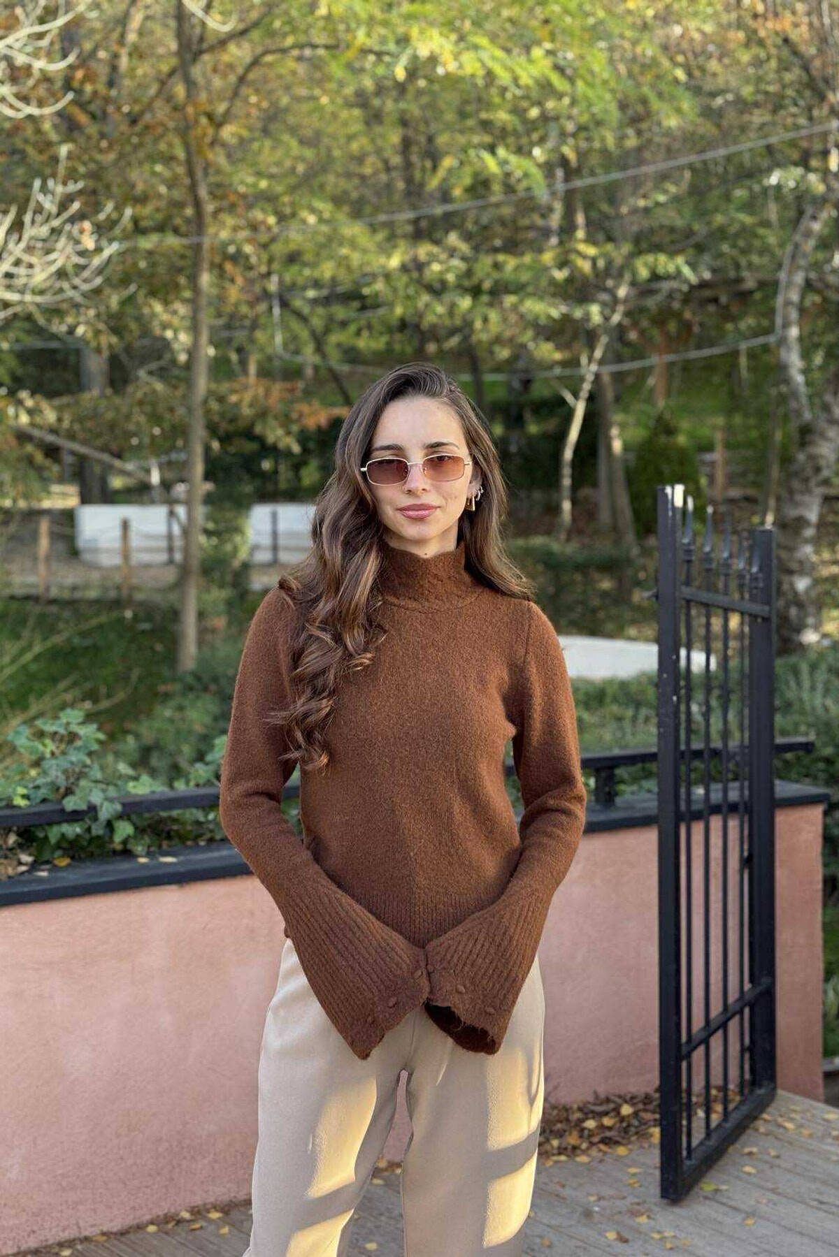 TRIKO NJË NGJYRSHE ME JAKË GOLF PËR FEMRA NË NGJYRË KAFE