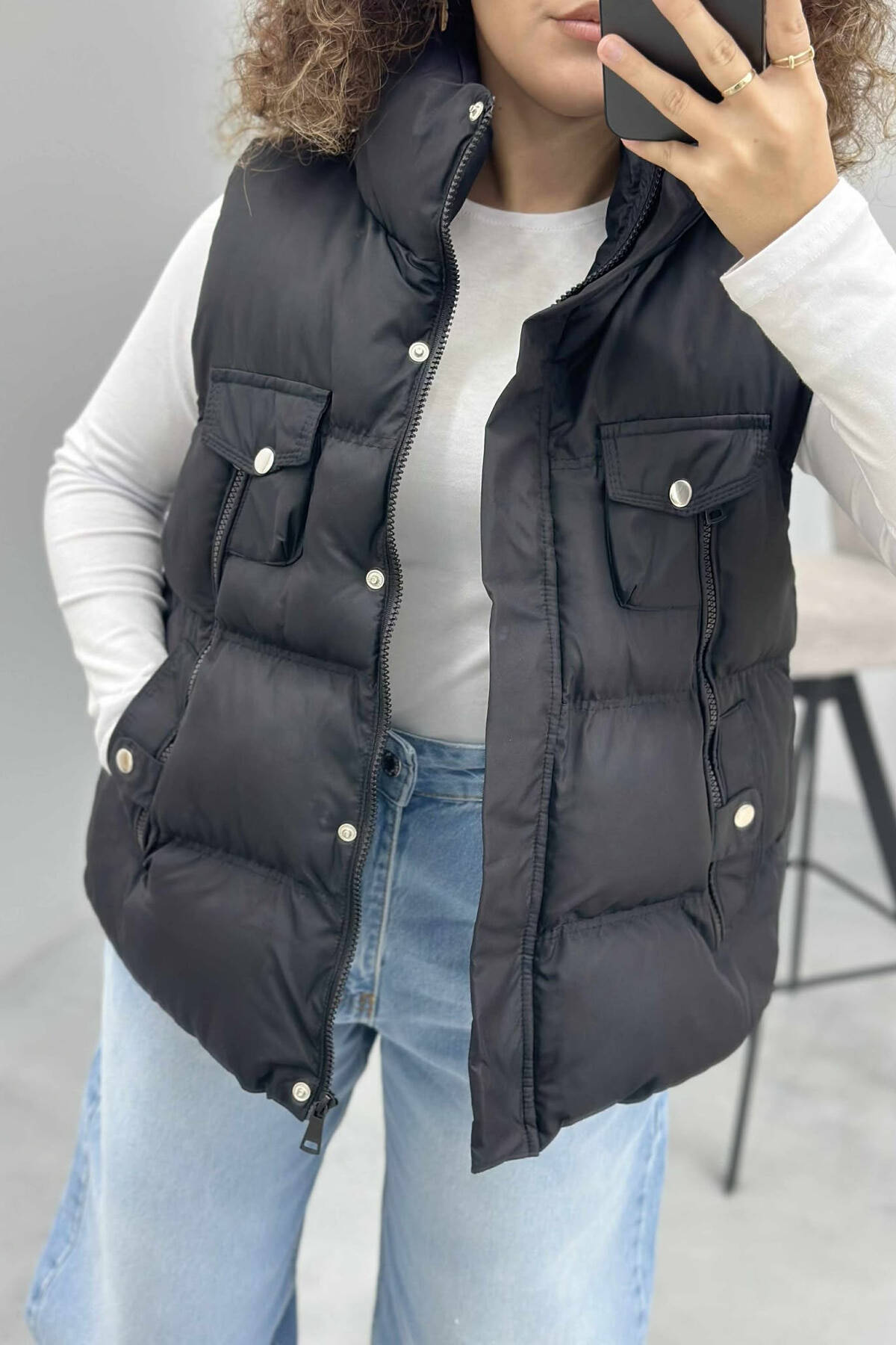 HIGH NECK ONE COLOR ZIPPER DETAILS WOMEN VEST BLACK/ E ZEZE