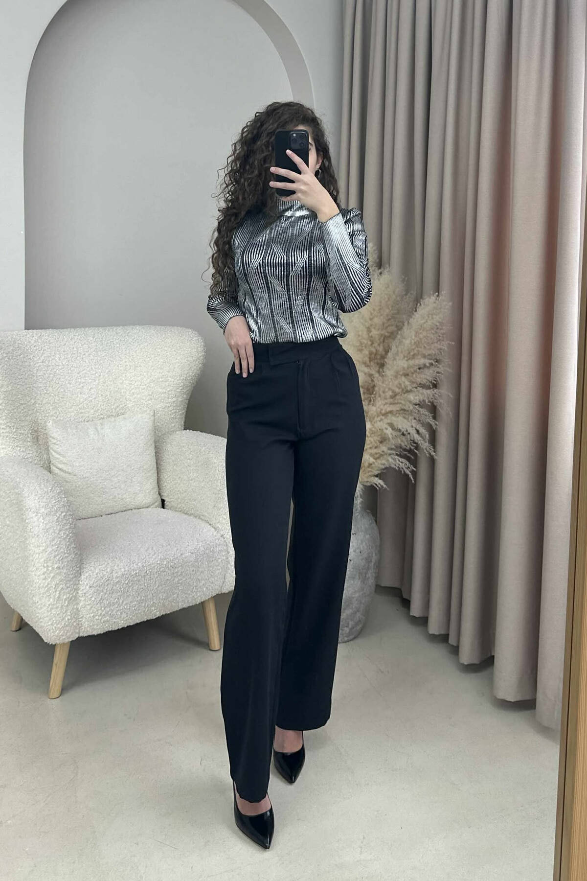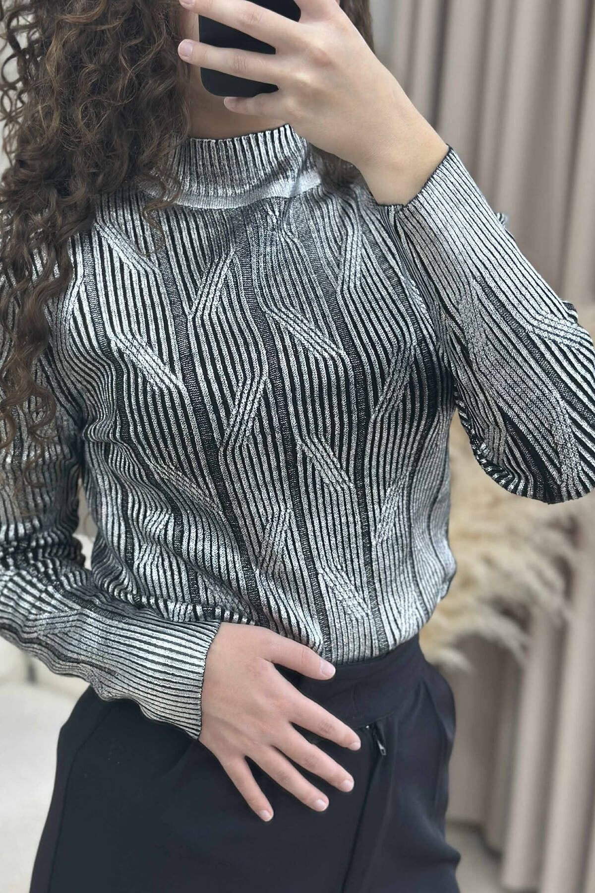 HIGH NECK SHINY MATERIAL WOMEN SWEATER SILVER/ARGJEND