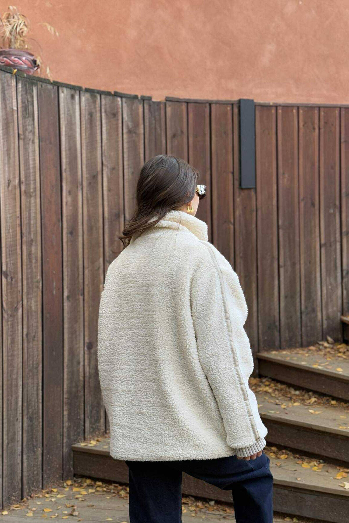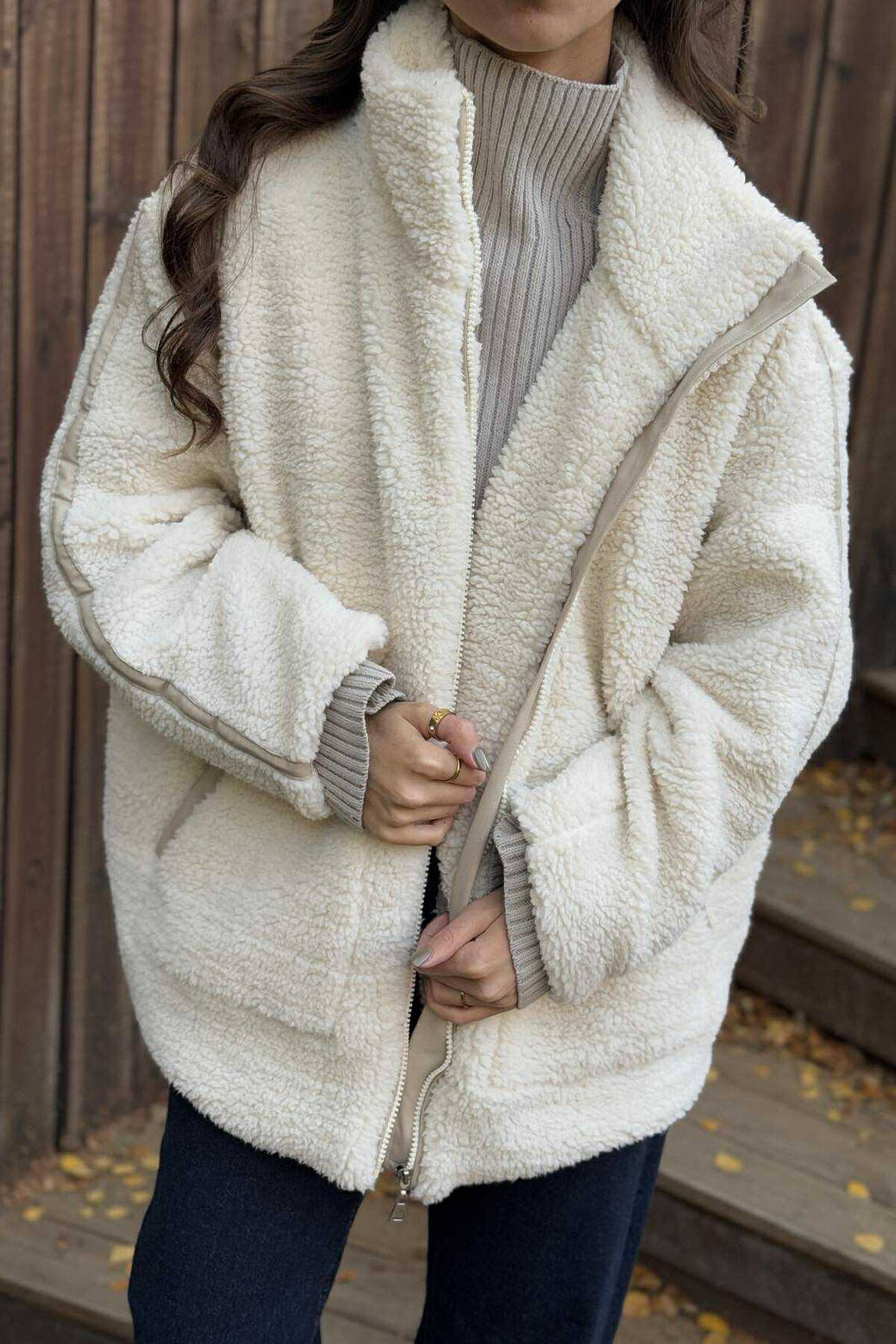 HIGH NECK SIMPLE FLUFFY WOMEN JACKET CREAM/KREM