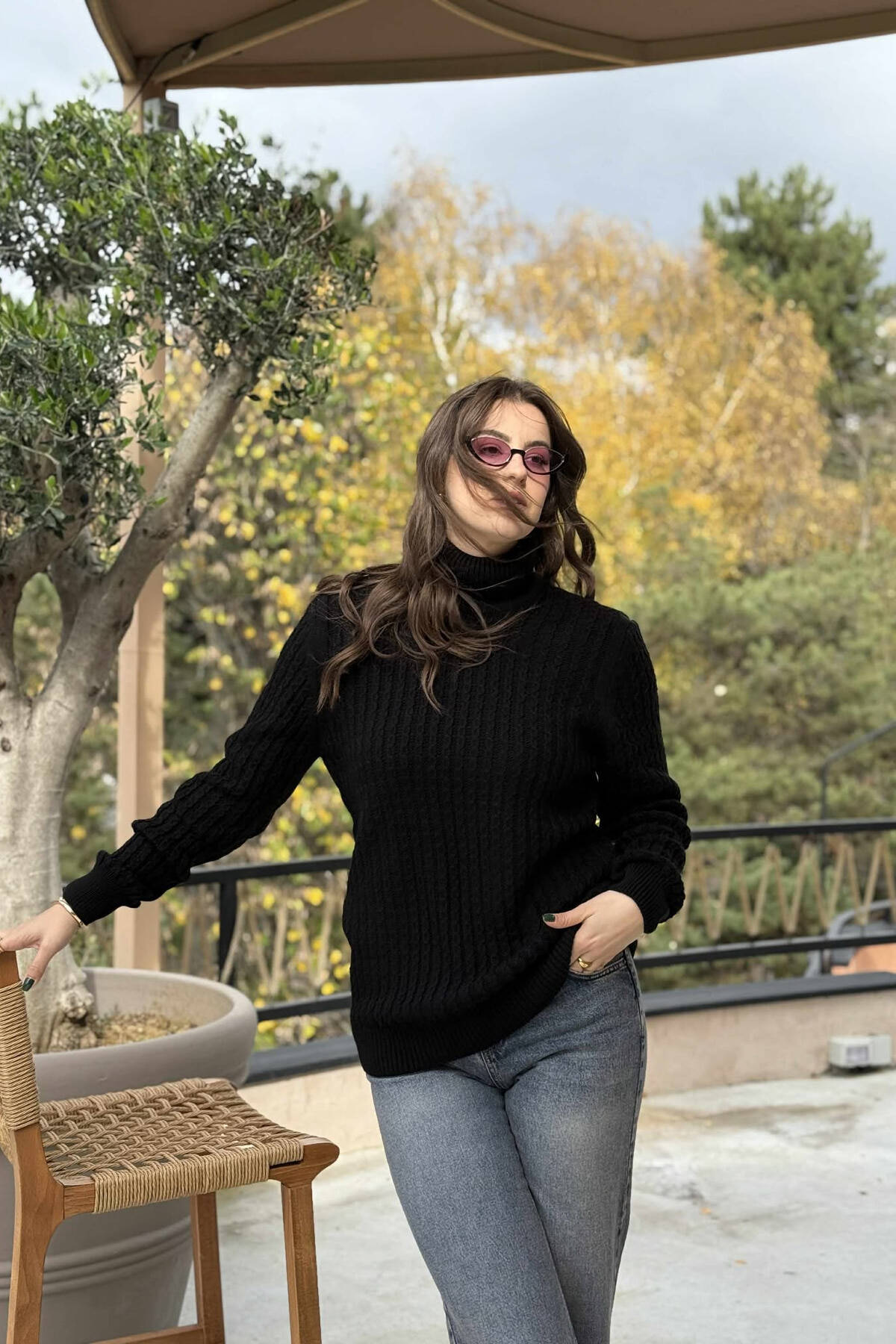 HIGH NECK SIMPLE ONE COLOR WOMEN SWEATER BLACK/ E ZEZE