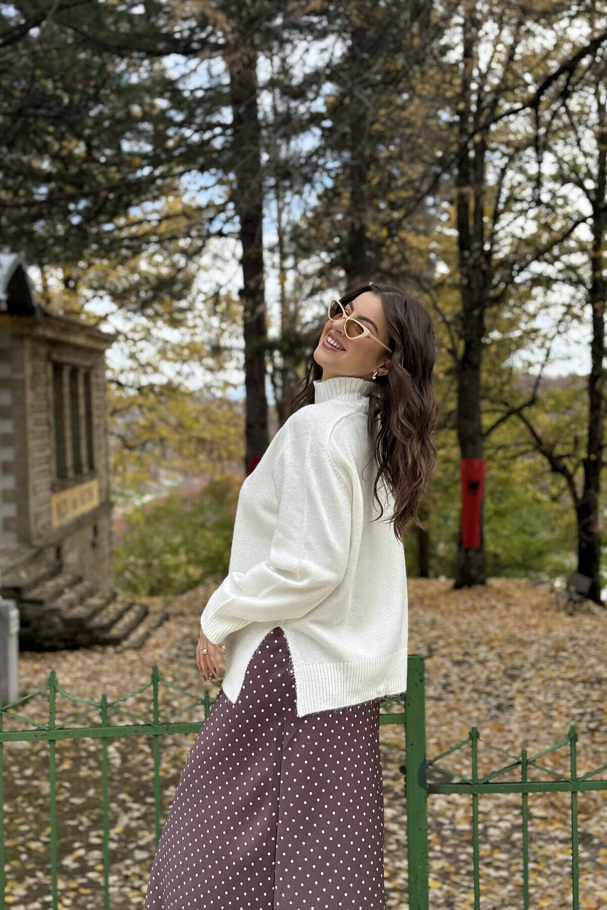 HIGH NECK SIMPLE WOMEN SWEATER WHITE-E BARDHE