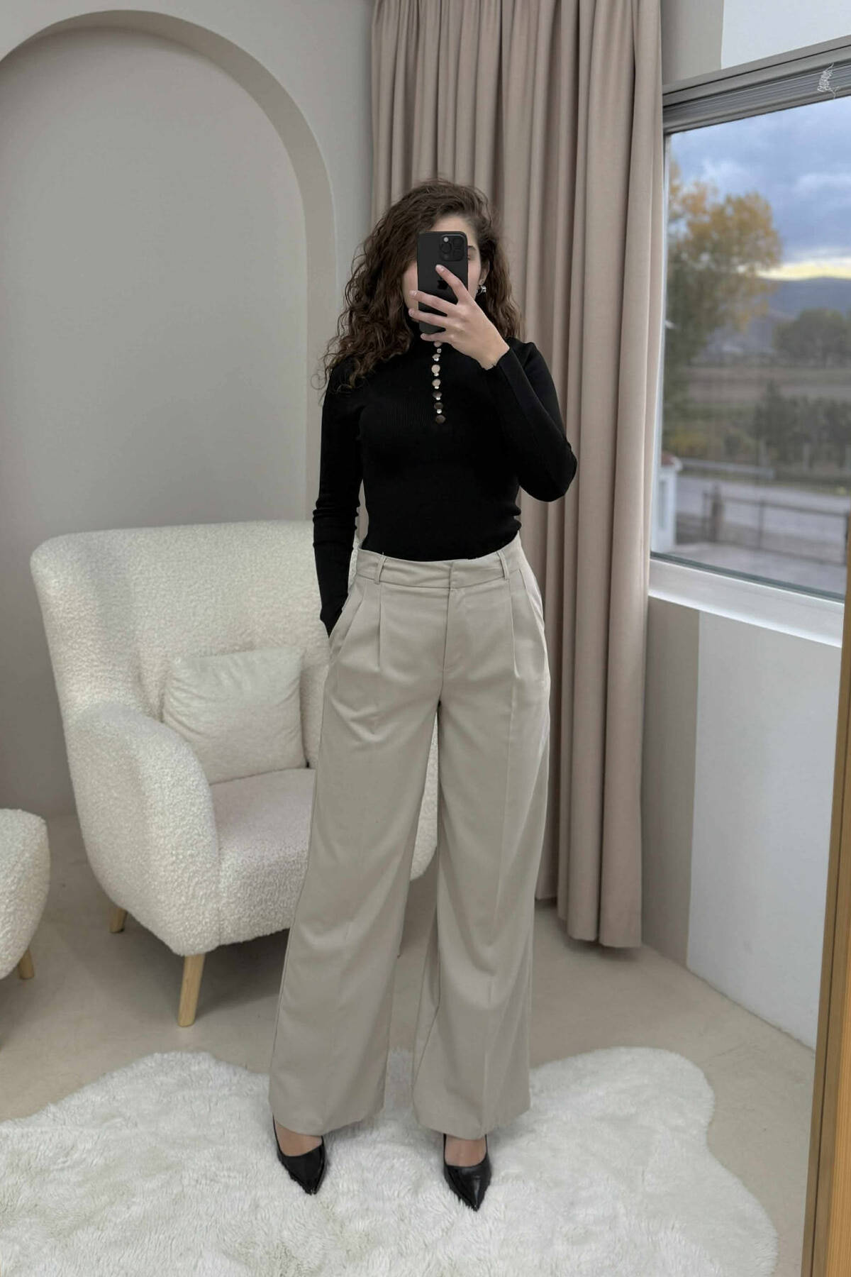 HIGH NECK STONES DETAIL WOMEN SWEATER BLACK/ E ZEZE