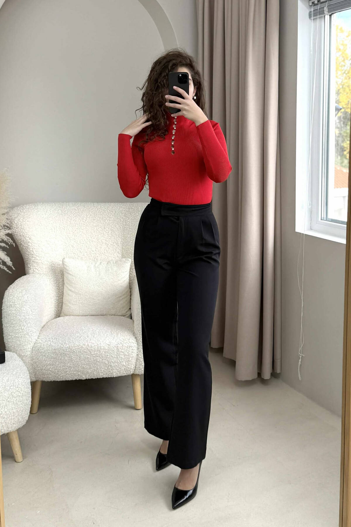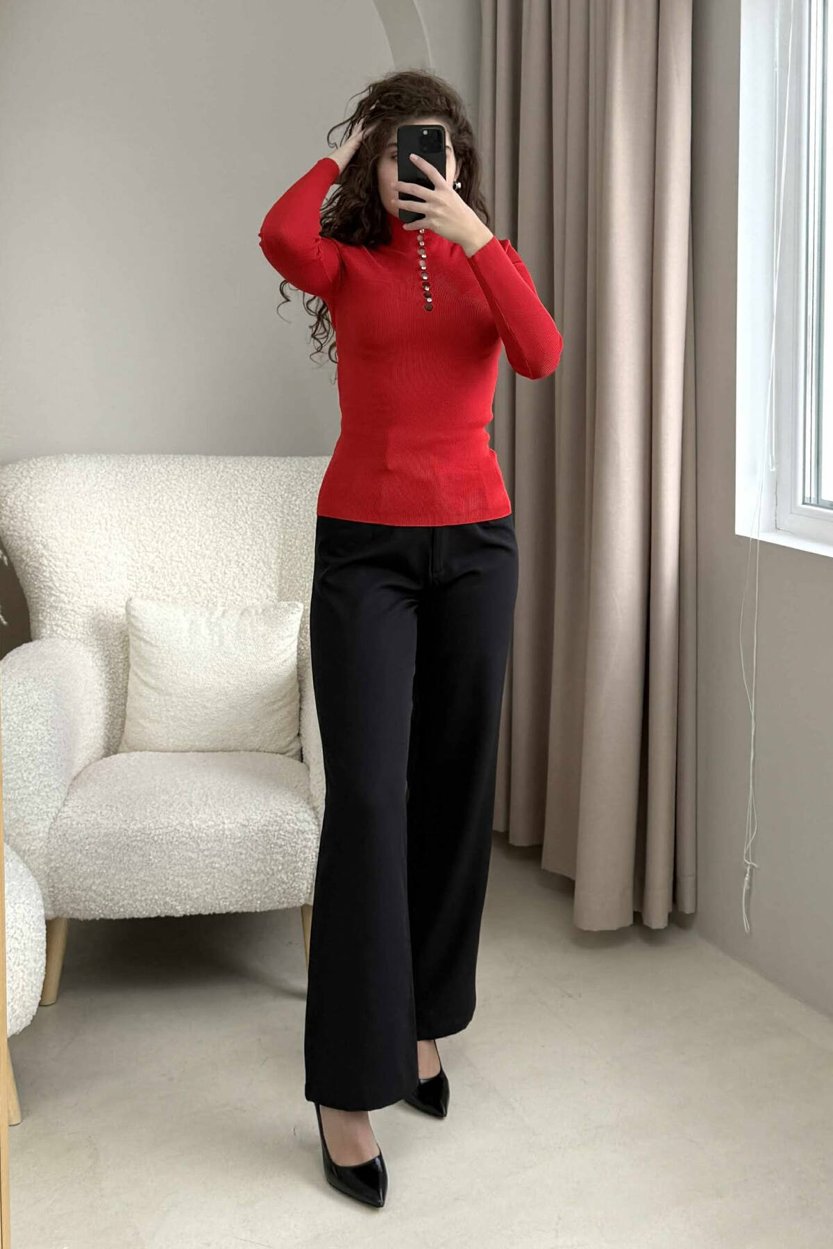HIGH NECK STONES DETAIL WOMEN SWEATER RED/E KUQE