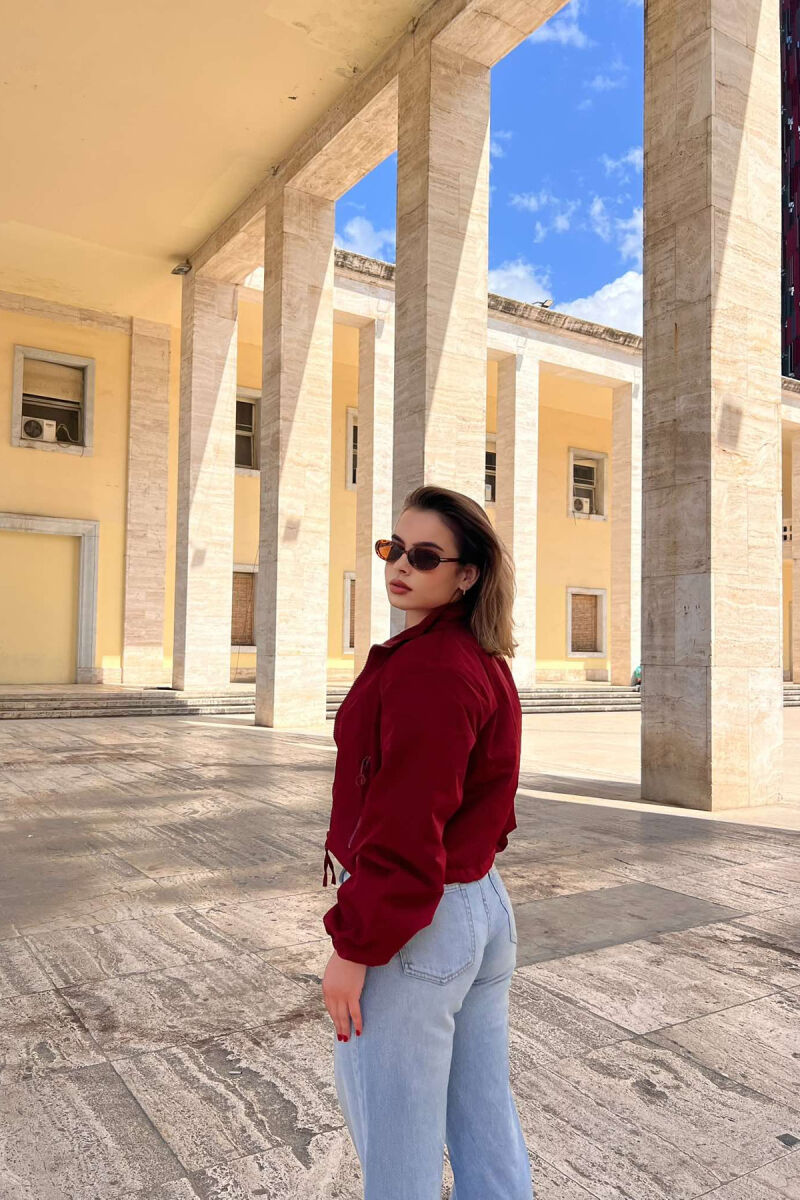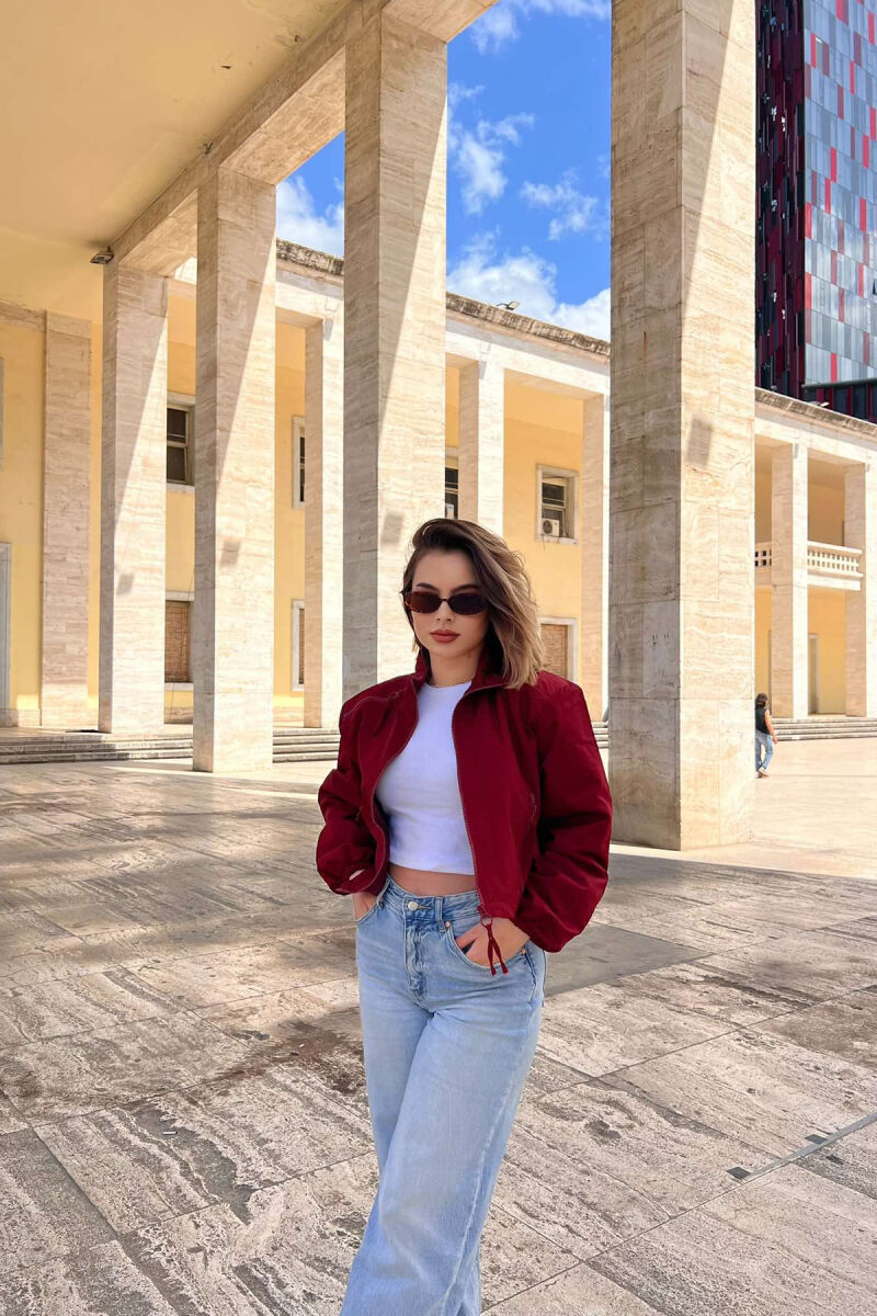 HIGH NECK ZIPPER POCKETS WOMEN JACKET BURGUNDY/VISHNJE