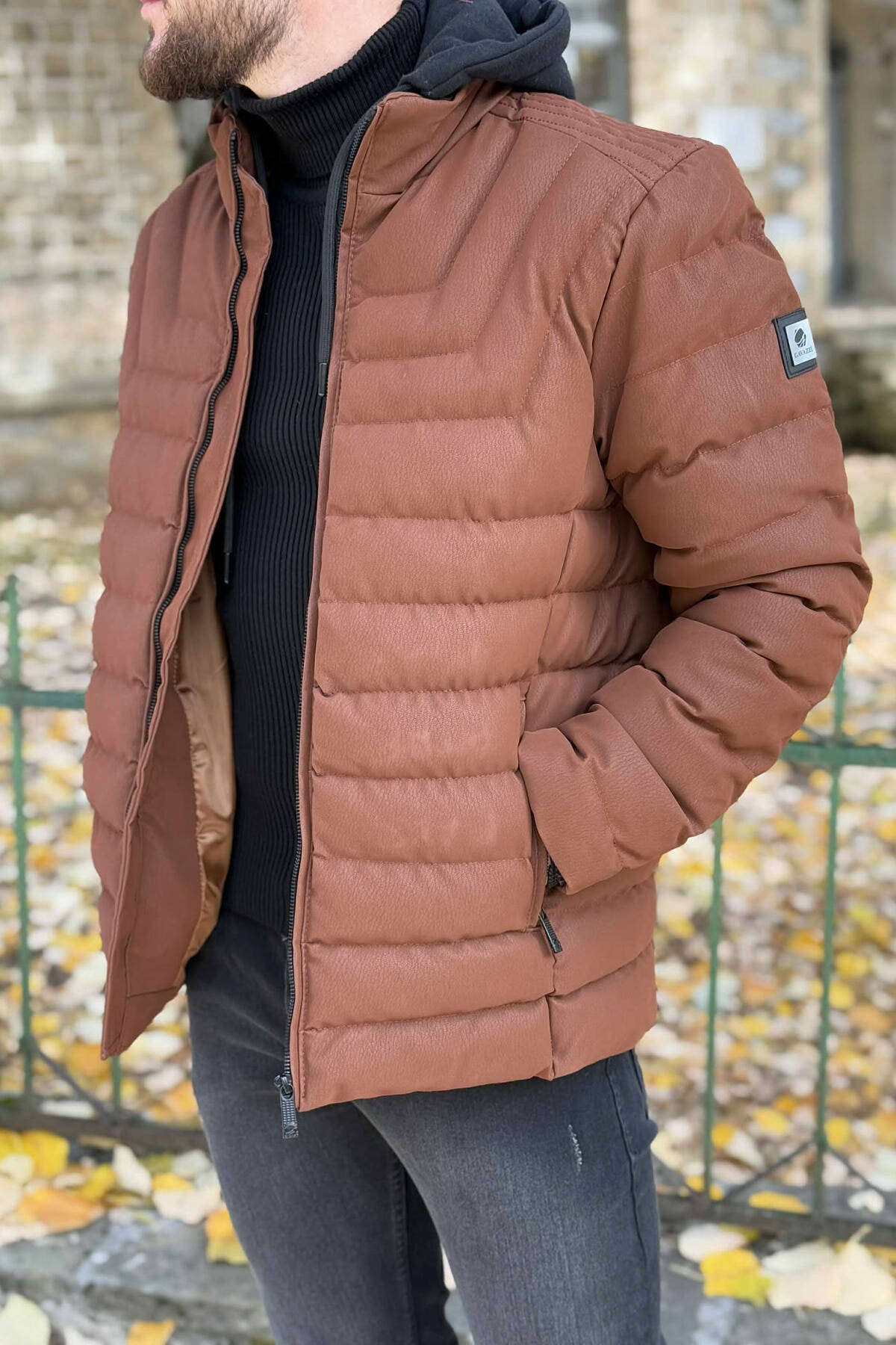 HOOD SIMPLE SHORT MEN PUFFER JACKET BROWN/KAFE