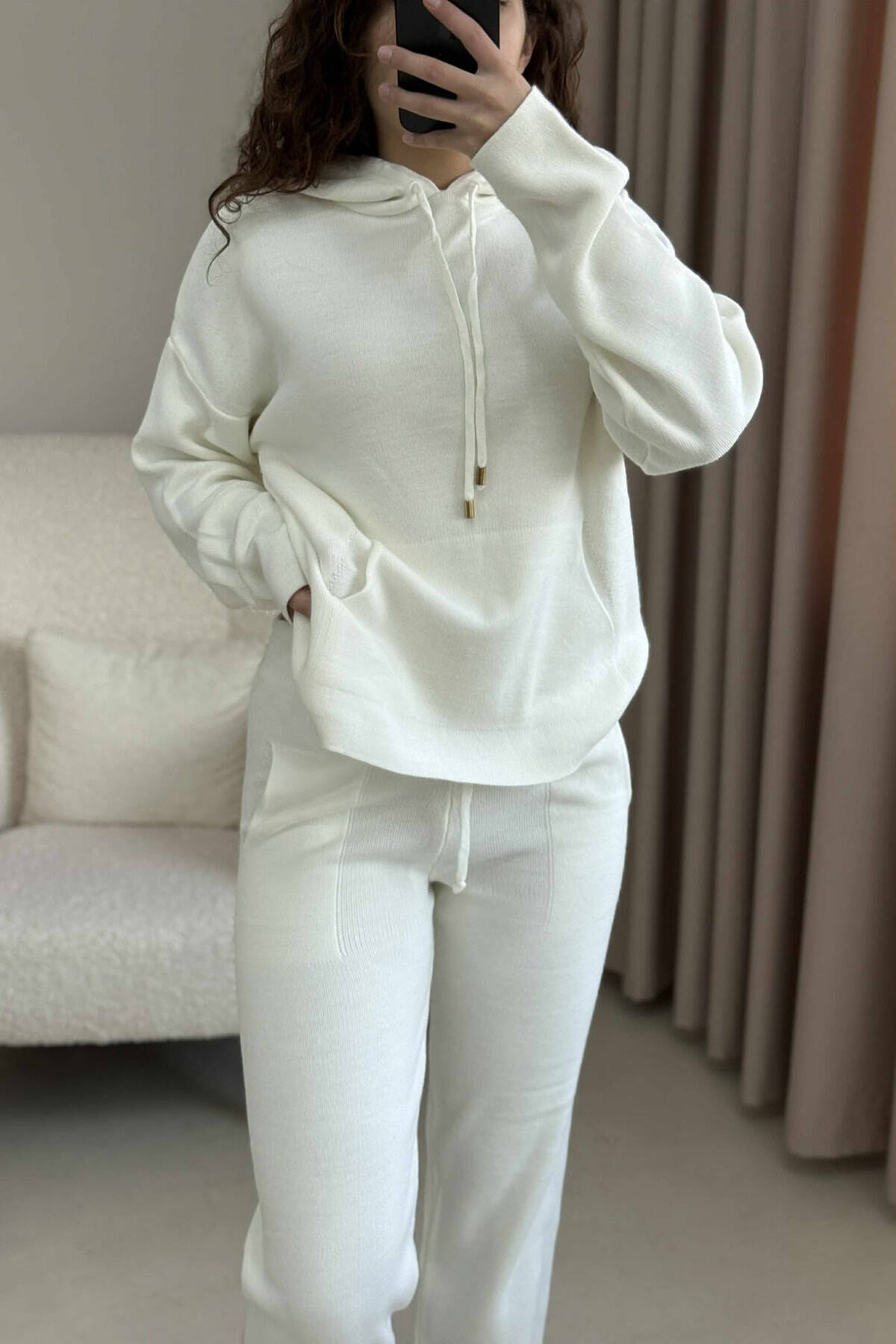 HOOD SWEATER+TROUSERS ONE COLOR KNIT WOMAN SET WHITE-E BARDHE