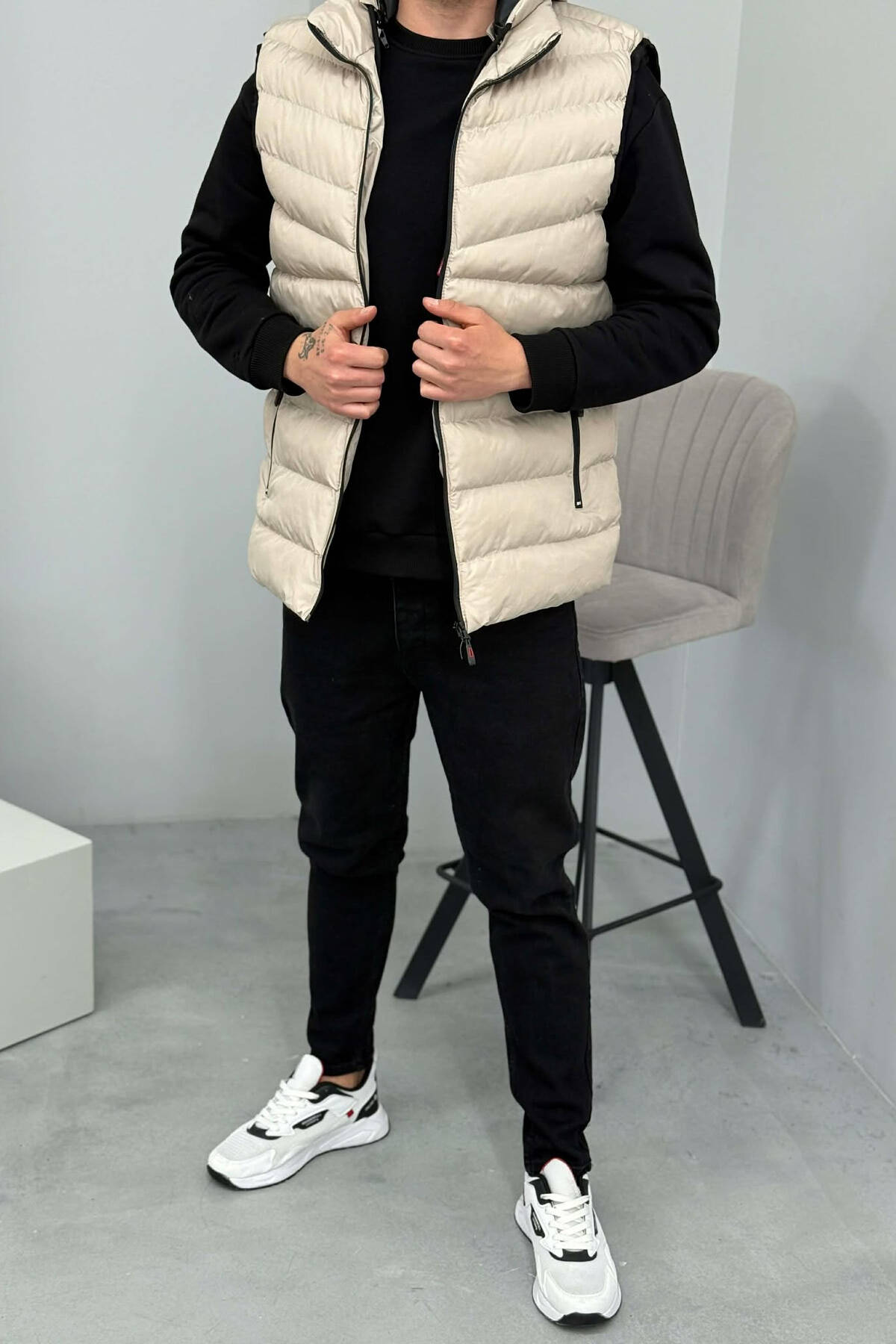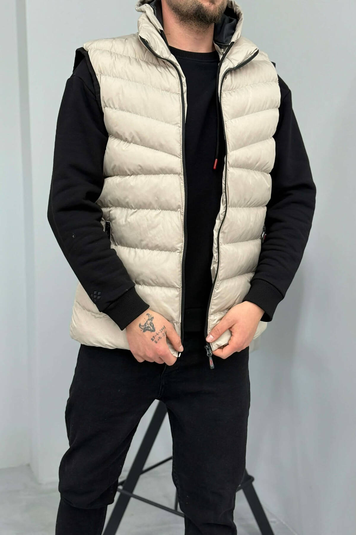 HOOD ZIPPER POCKET MEN VEST GREY ASH/GRI HIRI