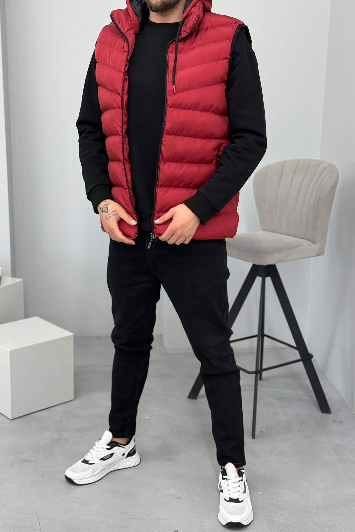 HOOD ZIPPER POCKET MEN VEST BURGUNDY/VISHNJE