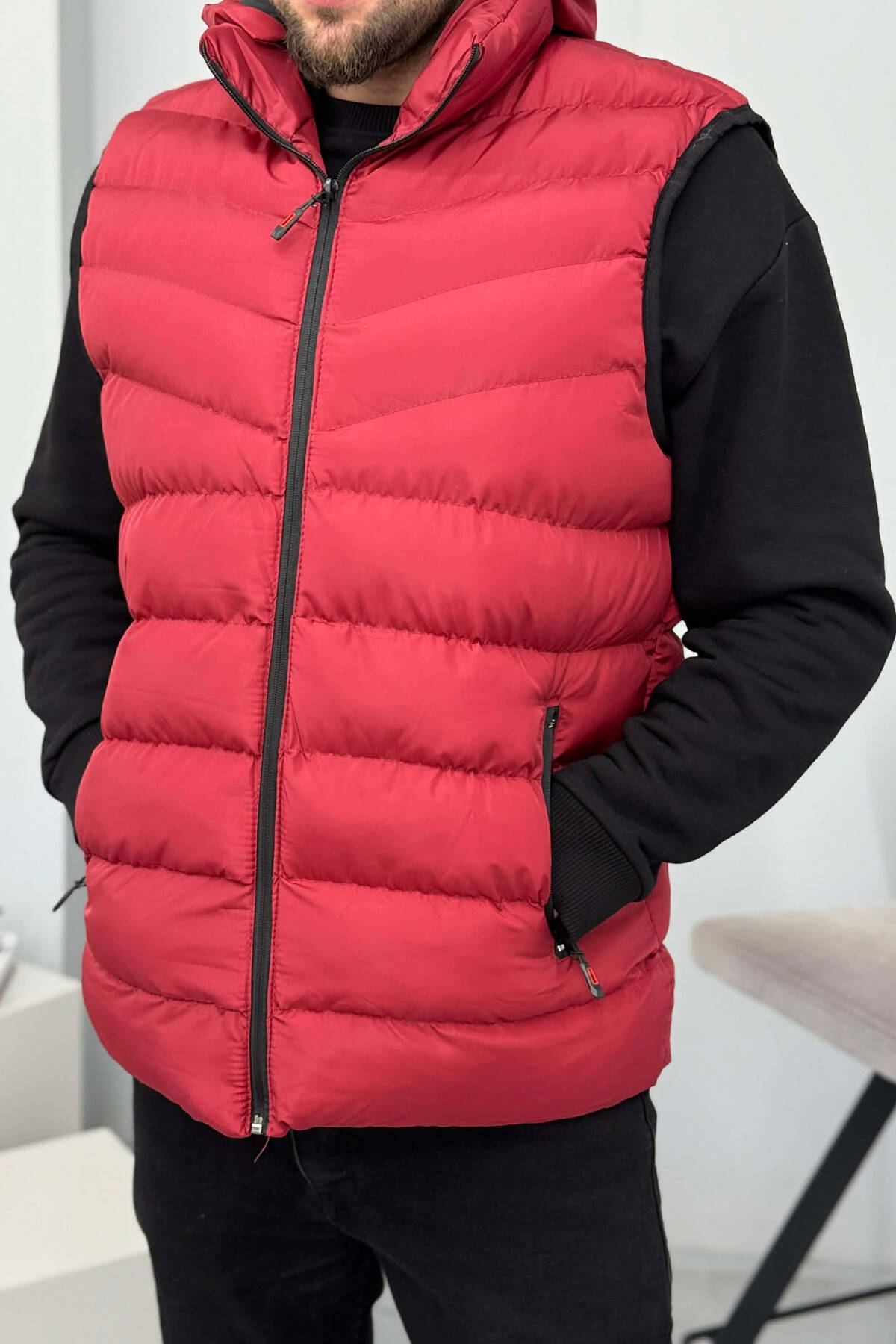 HOOD ZIPPER POCKET MEN VEST RED/E KUQE