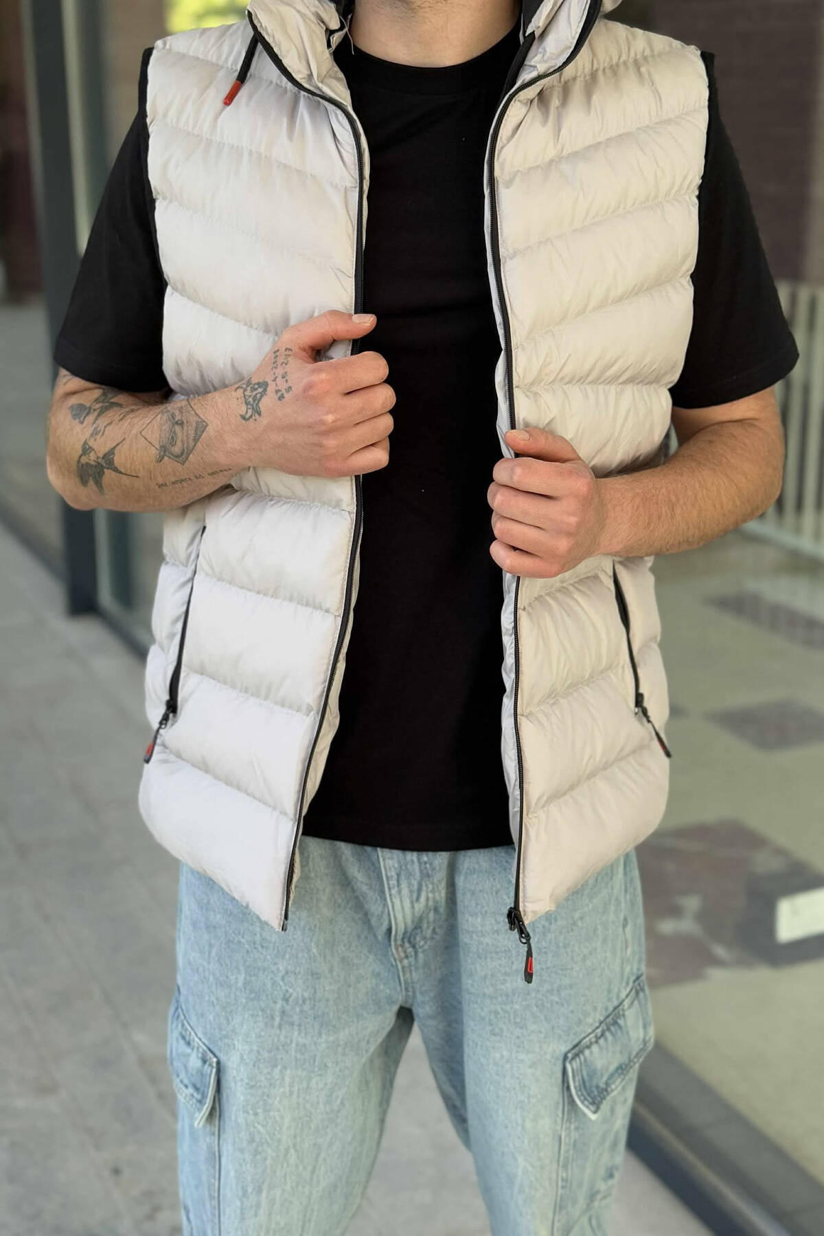 HOOD ZIPPER POCKET MEN VEST LIGHT GREY/GZ