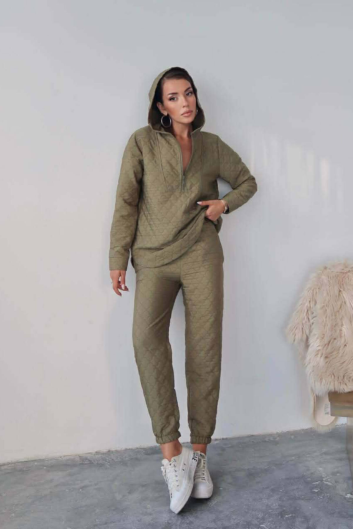 HOOD ZIPPERED SWEATSHIRT+TROUSERS WOMEN SET GREEN/JESHILE