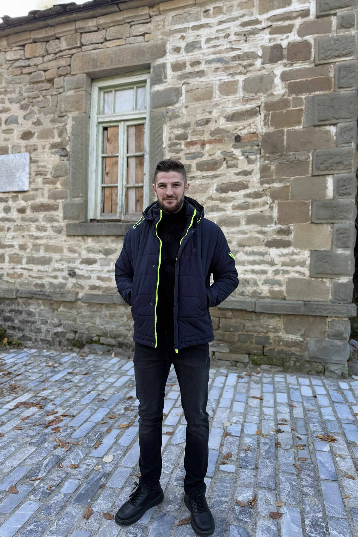 HOODED MEN PUFFER JACKET DARK BLUE/BEE