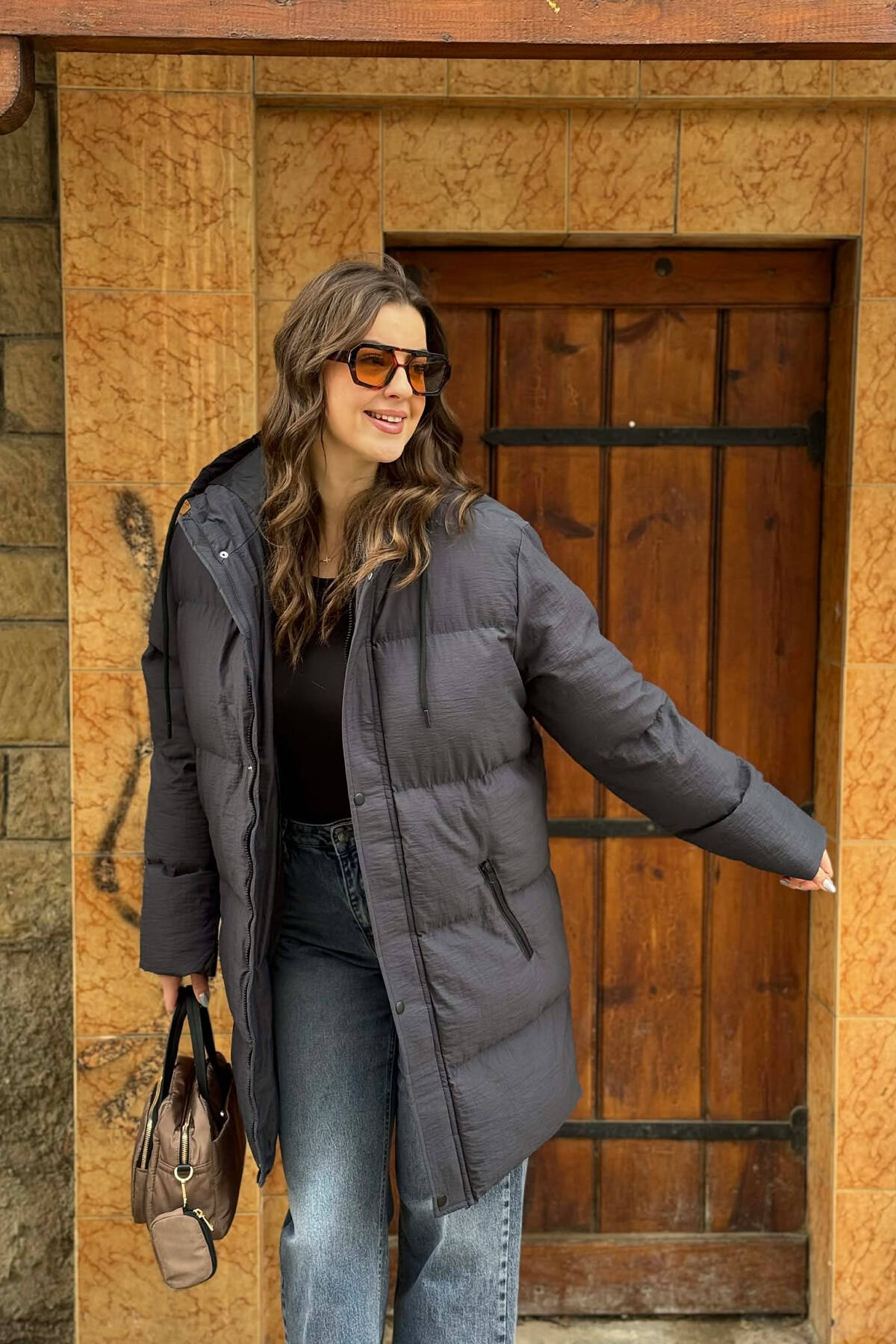 HOODED WOMEN PUFFER JACKET DARK GREY/GEE