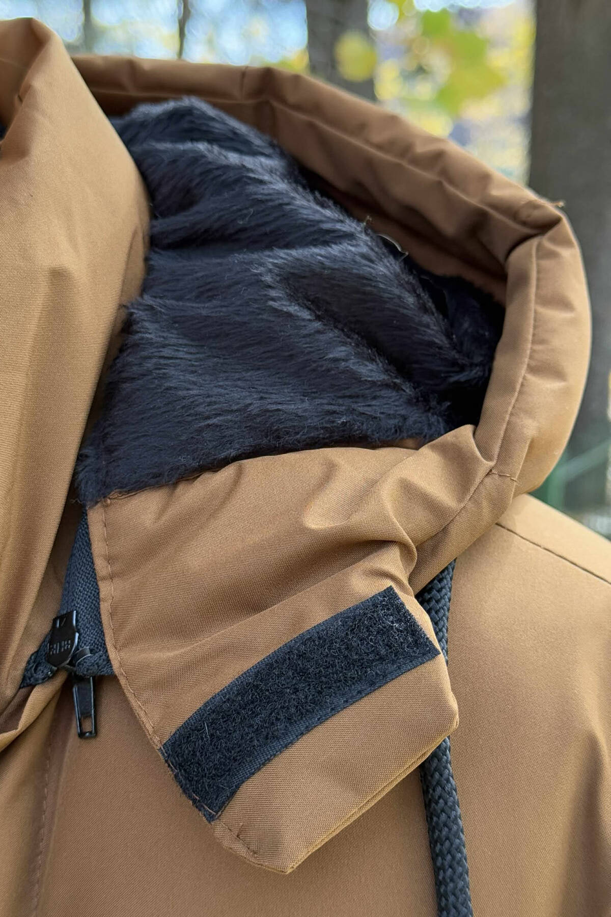 NECK AND BOTTOM BELTED FLUFFY MEN PUFFER JACKET BROWN/KAFE