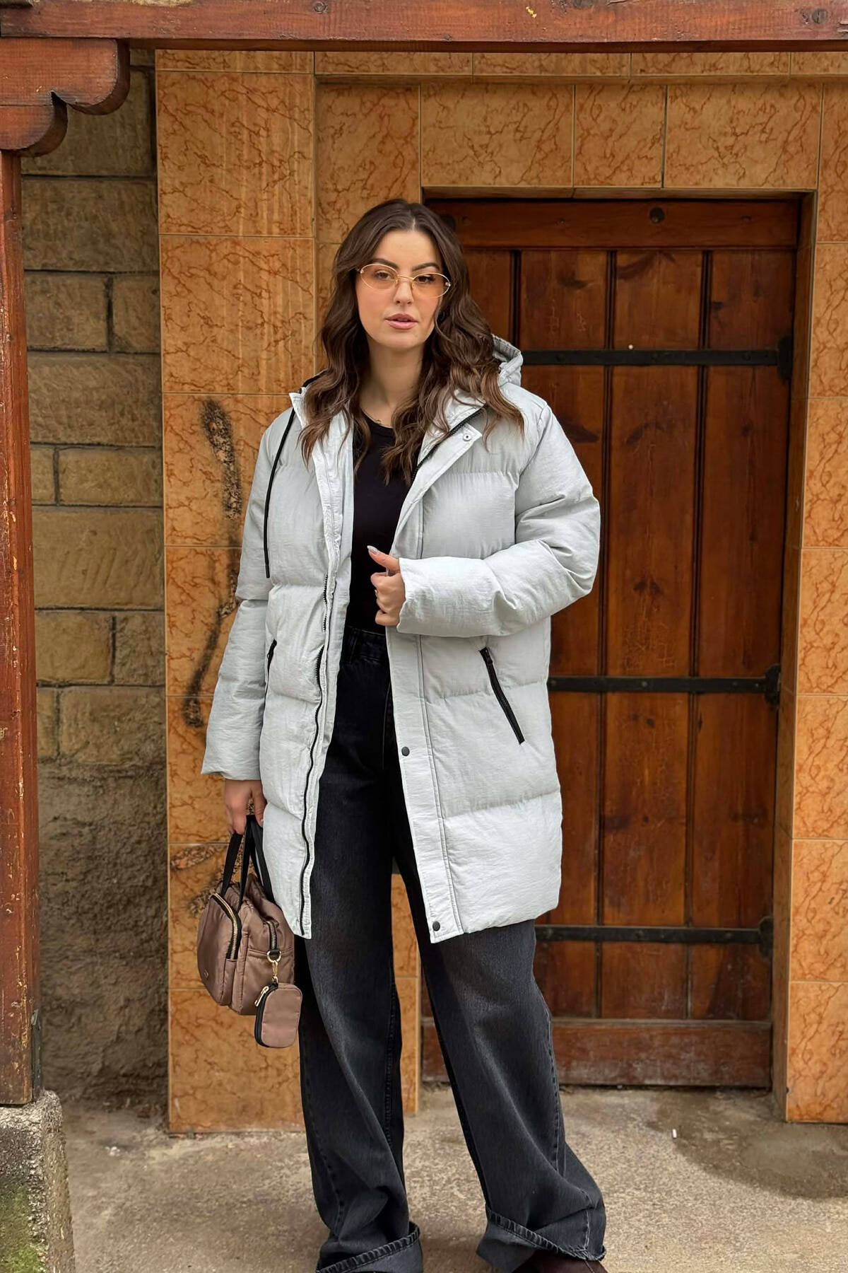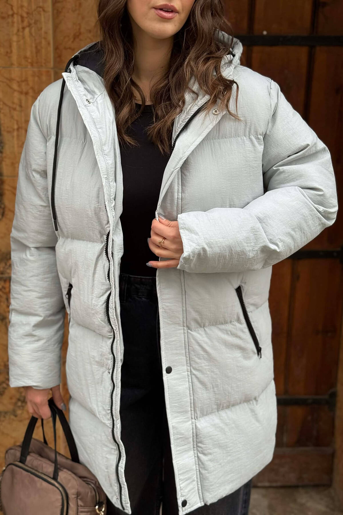 HOODED WOMEN PUFFER JACKET LIGHT GREY/GZ
