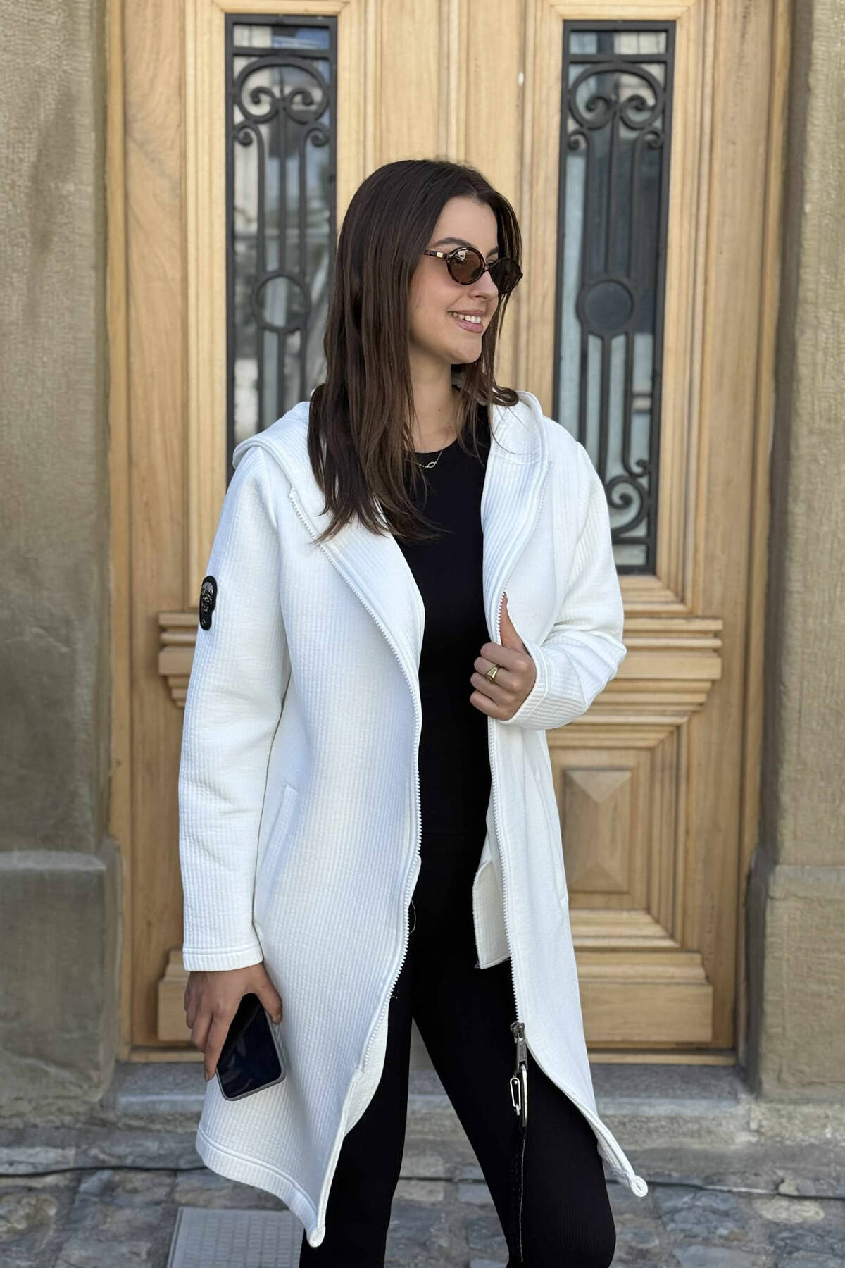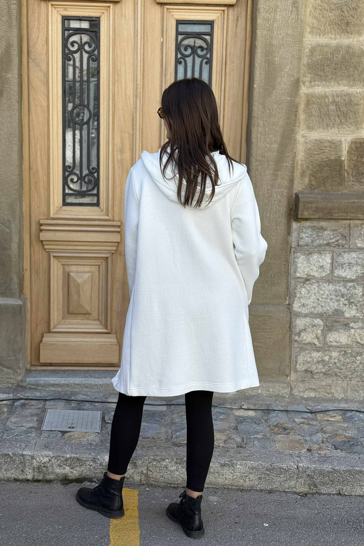 HOODED ONE COLOR LONG WOMEN CARDIGAN WHITE-E BARDHE