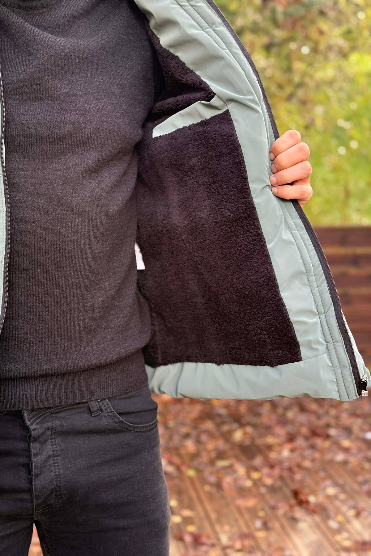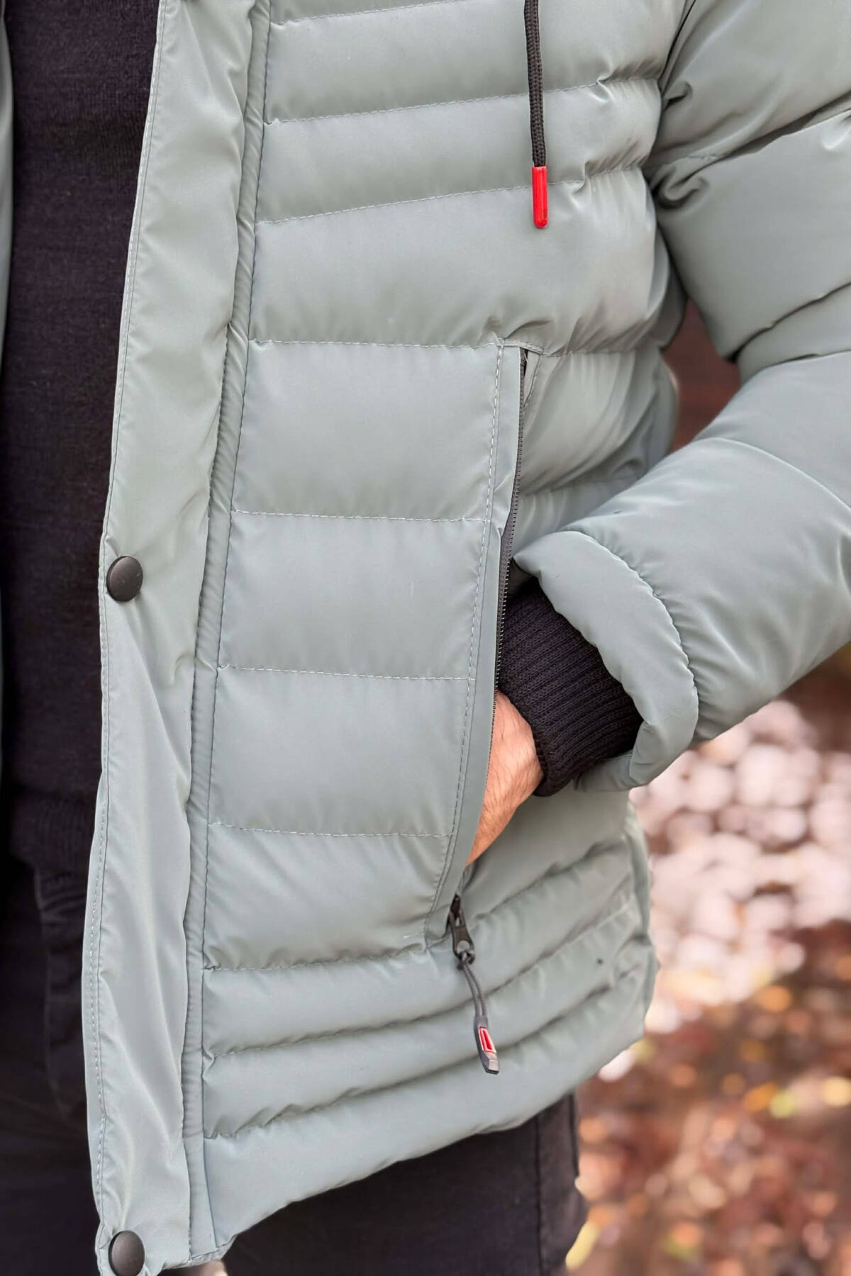 ONE COLOR FLUFFY SIDE POCKET MEN PUFFER JACKET DARK GREY/GEE