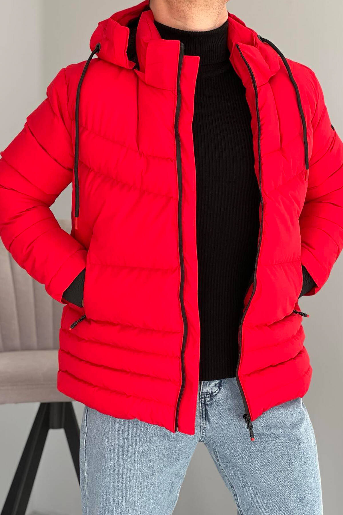 HOODED ONE COLOR MEN PUFFER JACKET RED/E KUQE