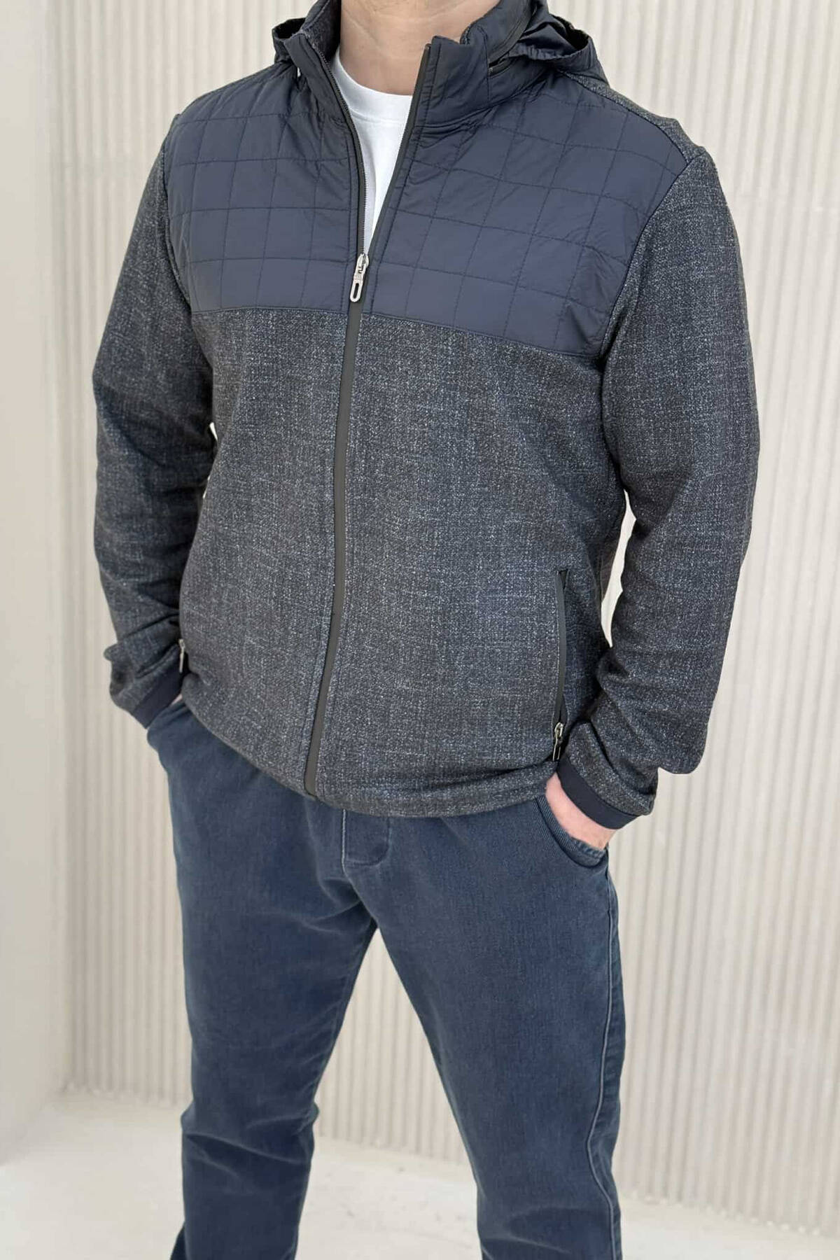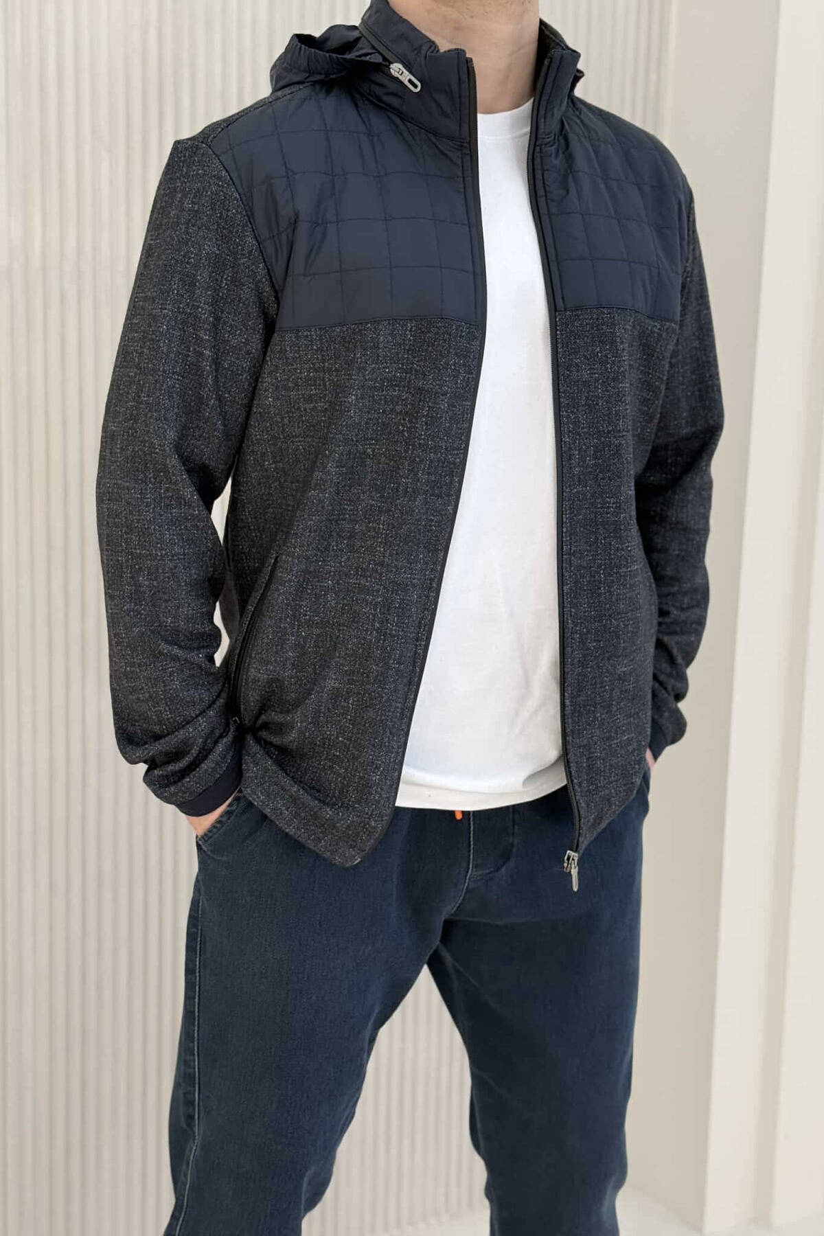 XHUP NJE NGJYRESH ME KAPUÇ PER MESHKUJ NE NGJYRE GRI