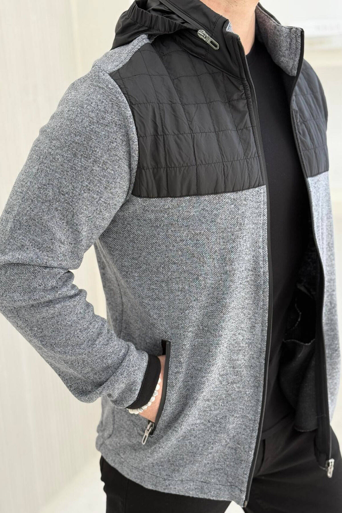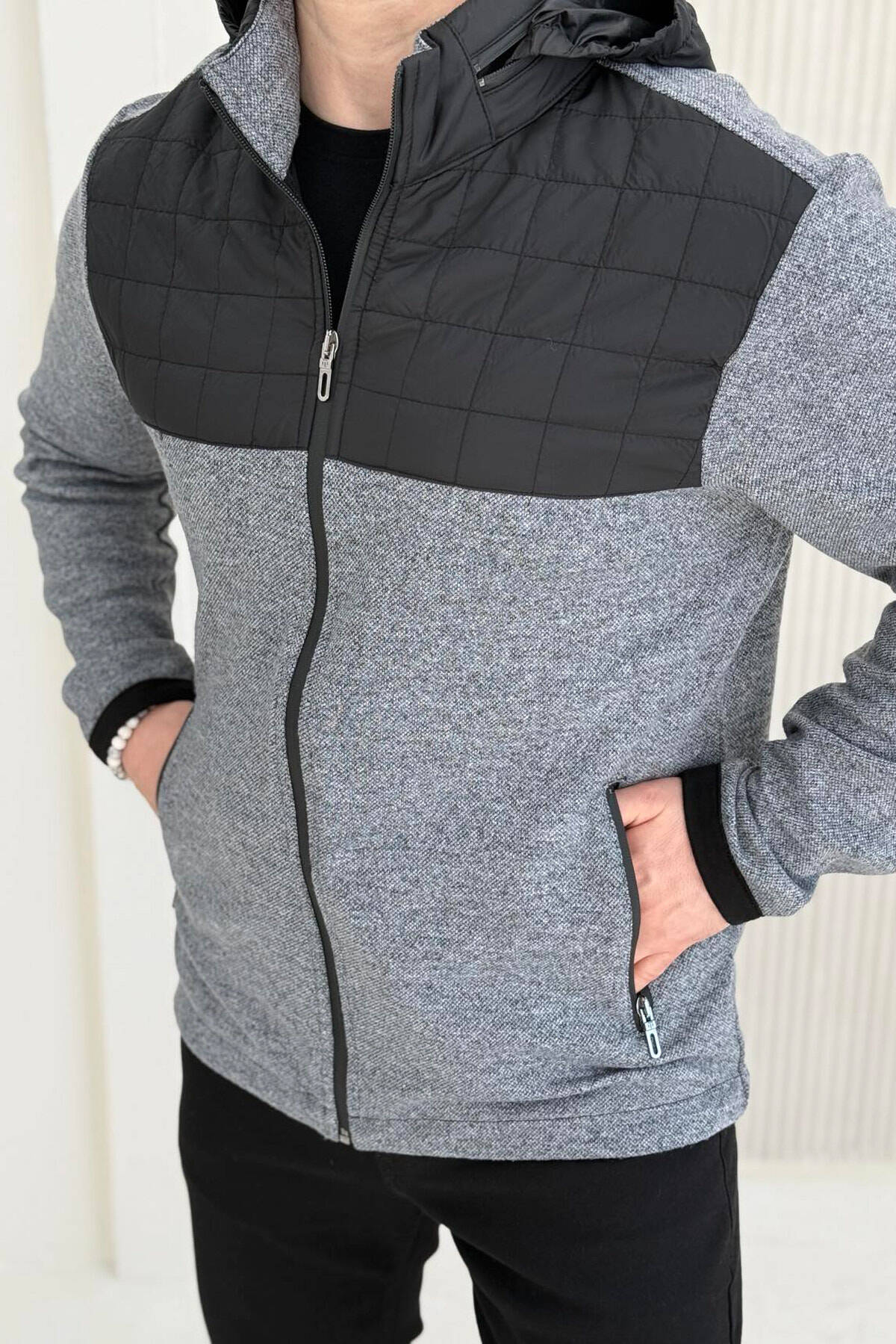 HOODED SIMPLE LIGHT MEN JACKET GREY/GRI