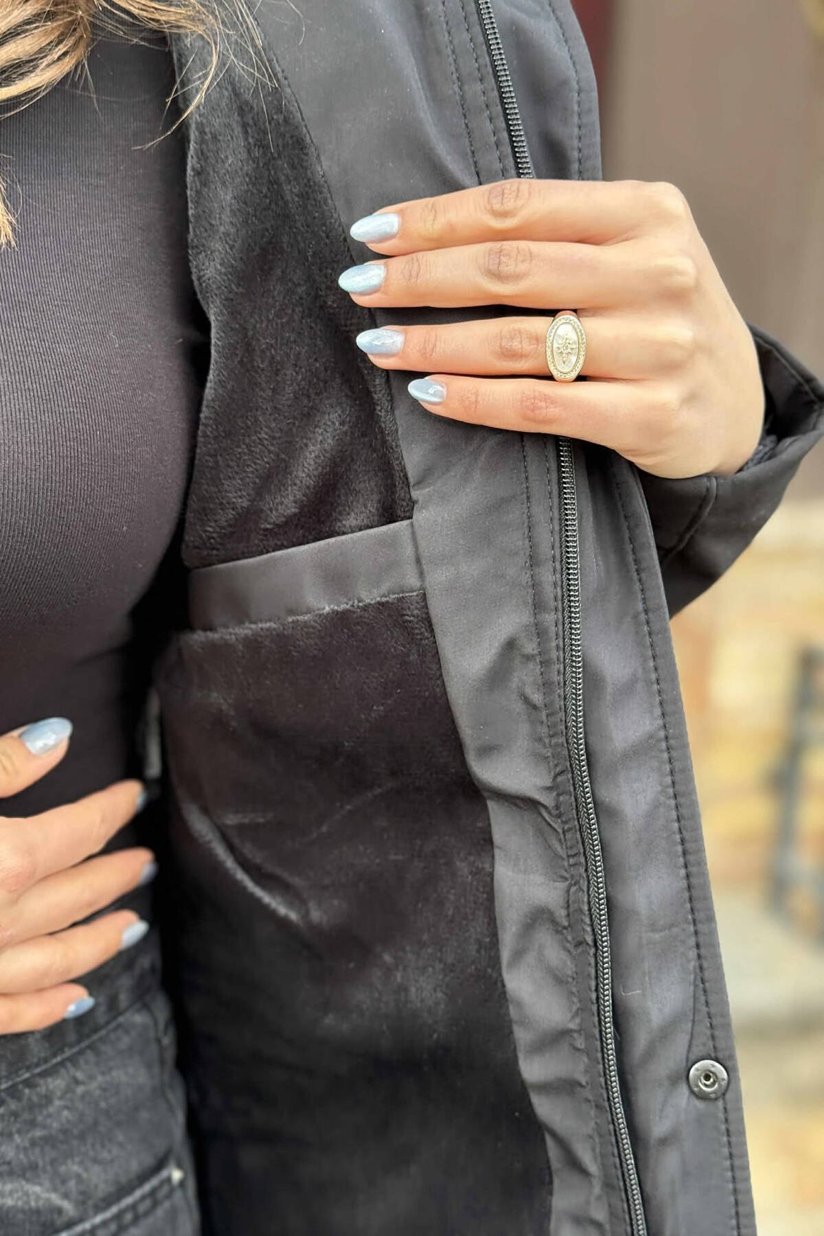 XHUP NJE NGJYRESH ME KAPUÇ DHE ZINXHIR PER FEMRA NE NGJYRE TE ZEZE