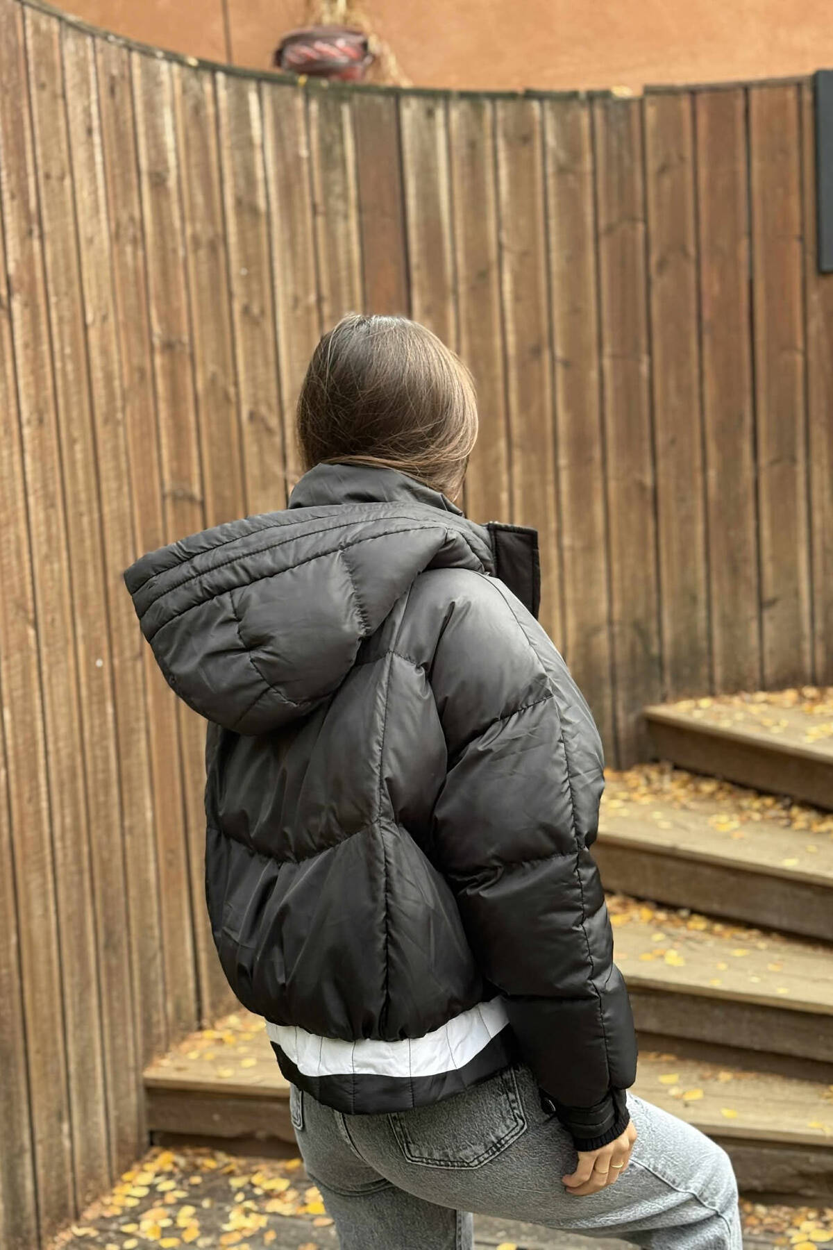 HOODED ZIPPER CROPPED WOMEN PUFFER JACKET BLACK/ E ZEZE