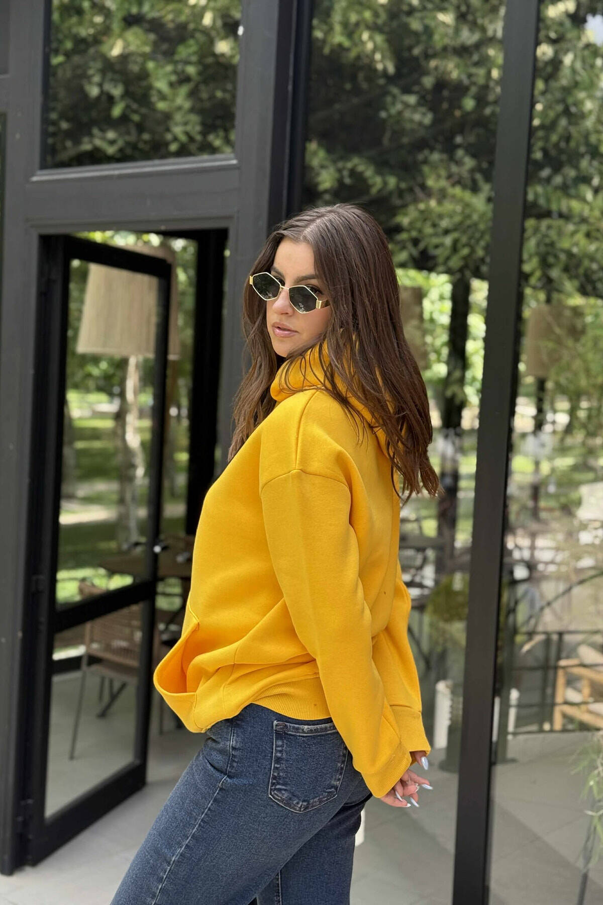 HOODIE E THJESHTË NJË NGJYRËSHE ME PUSH PËR FEMRA NË NGJYRË TË VERDHË