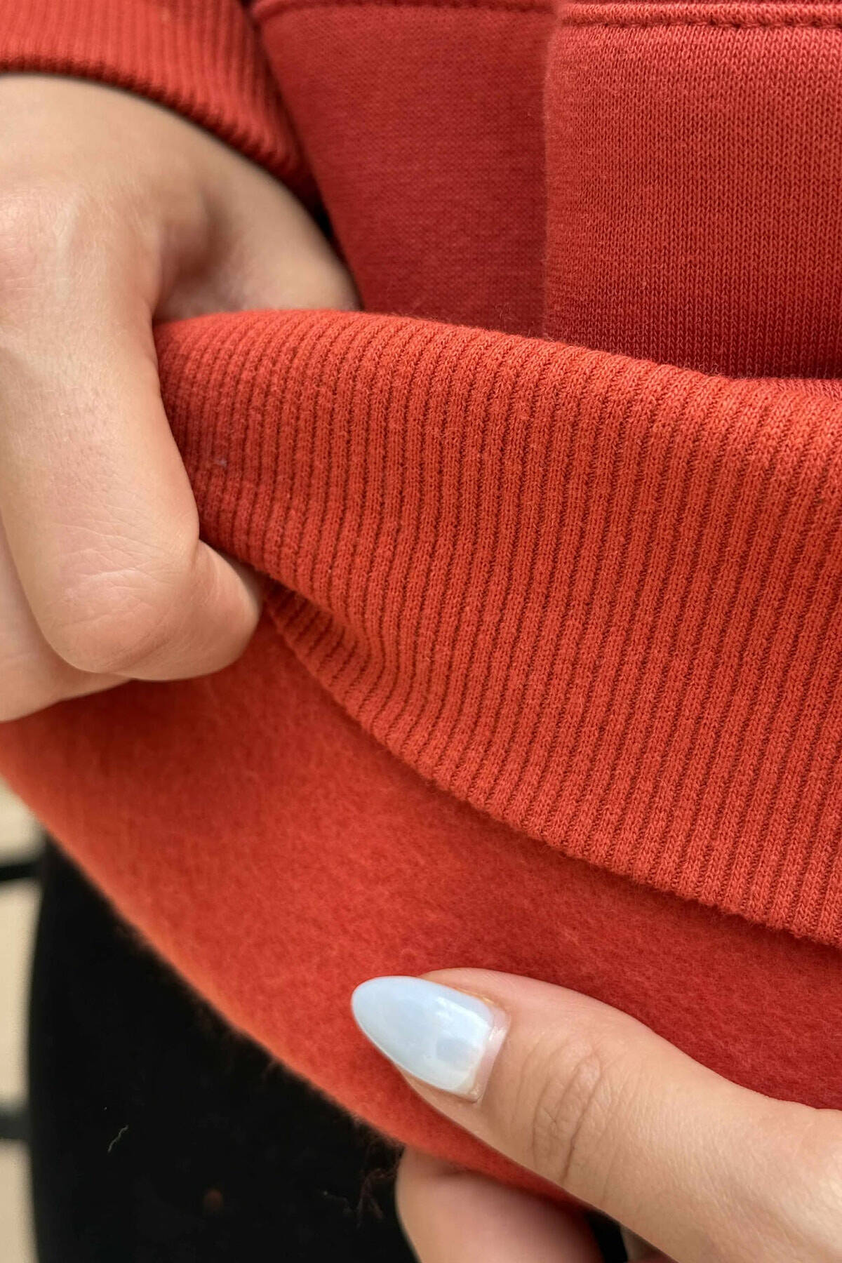 HOODIE NJË NGJYRËSHE ME PUSH DHE LOGO NË PJESËN PARA PËR FEMRA NË NGJYRË PORTOKALLI