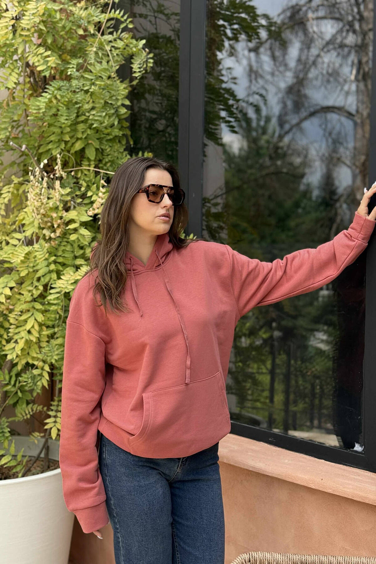 HOODIE E THJESHTË NJË NGJYRËSHE ME PUSH PËR FEMRA NË NGJYRËN ROZË