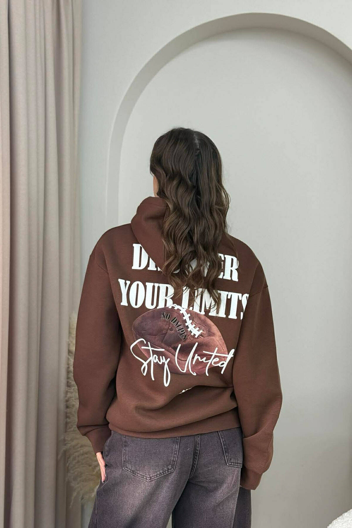 HOODIE ME PUSH ME SHKRIME NE PJESEN E PASME PER FEMRA NE NGJYRE KAFE TE ERRET