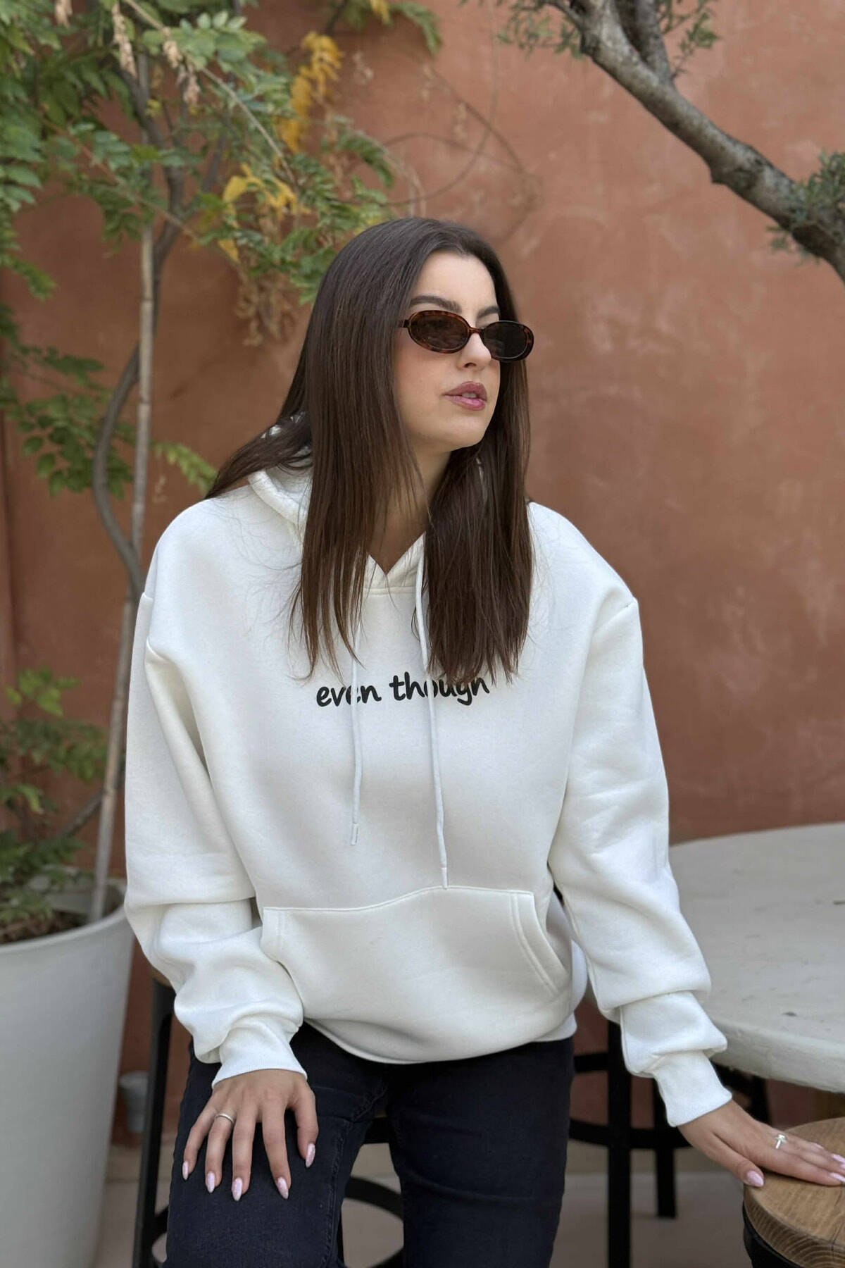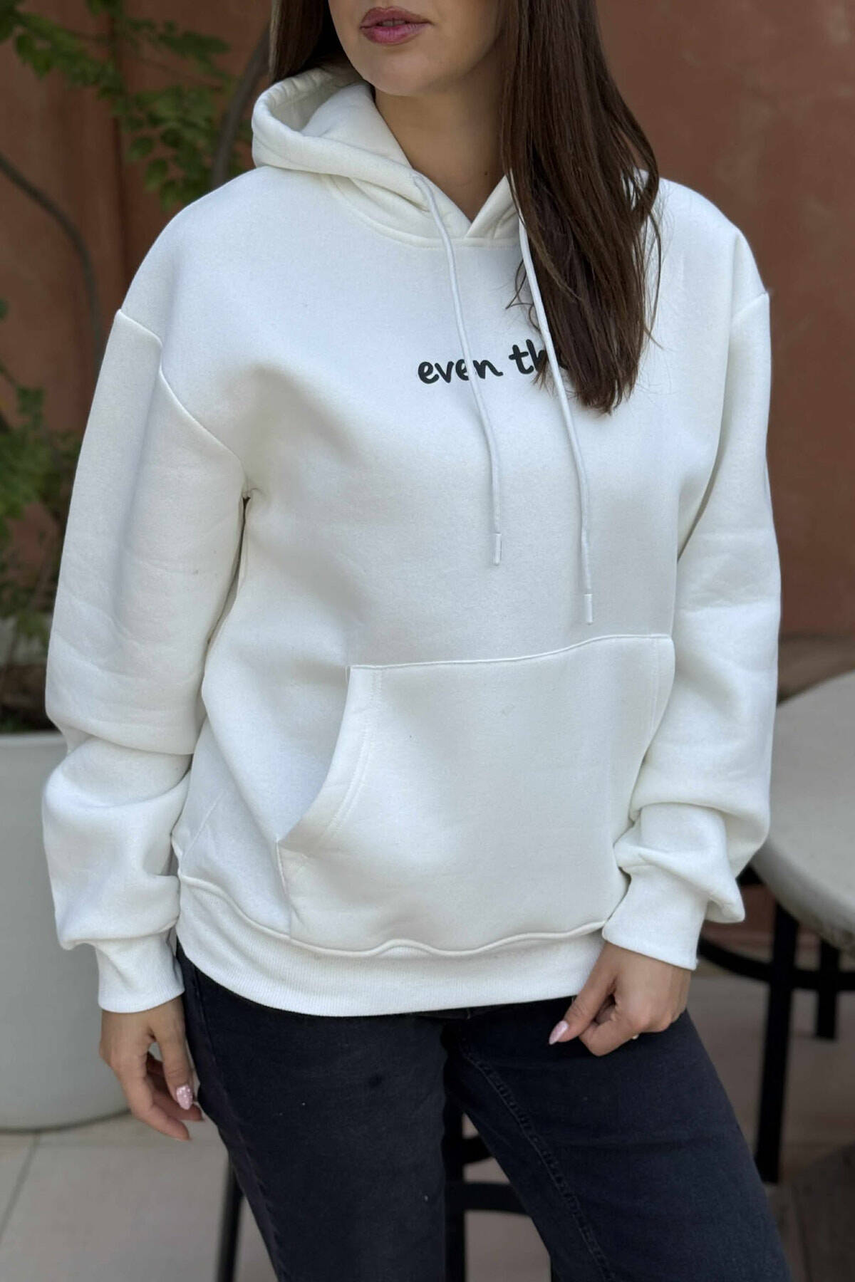 HOODIE ME PUSH NJËNGJYRËSHE DHE ME SHKRIM PARA PËR FEMRA NË NGJYRËN KREM