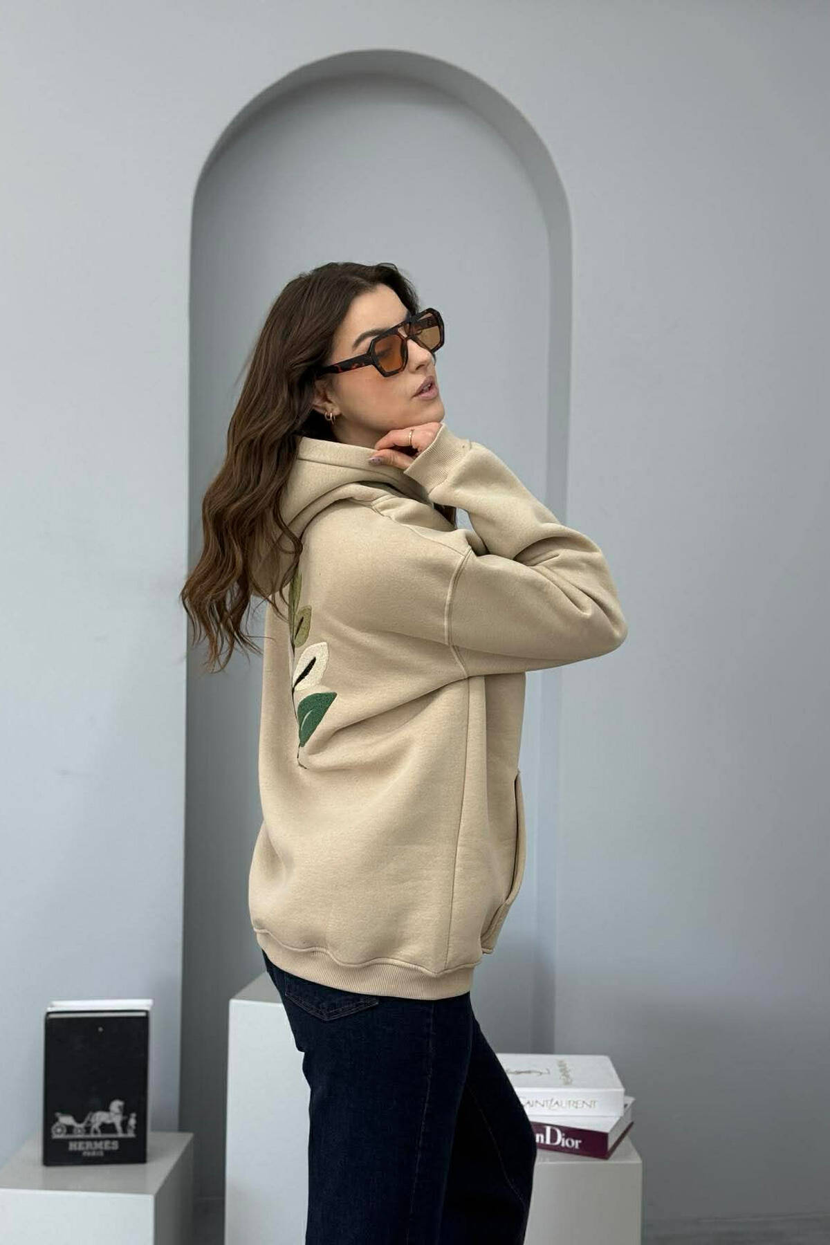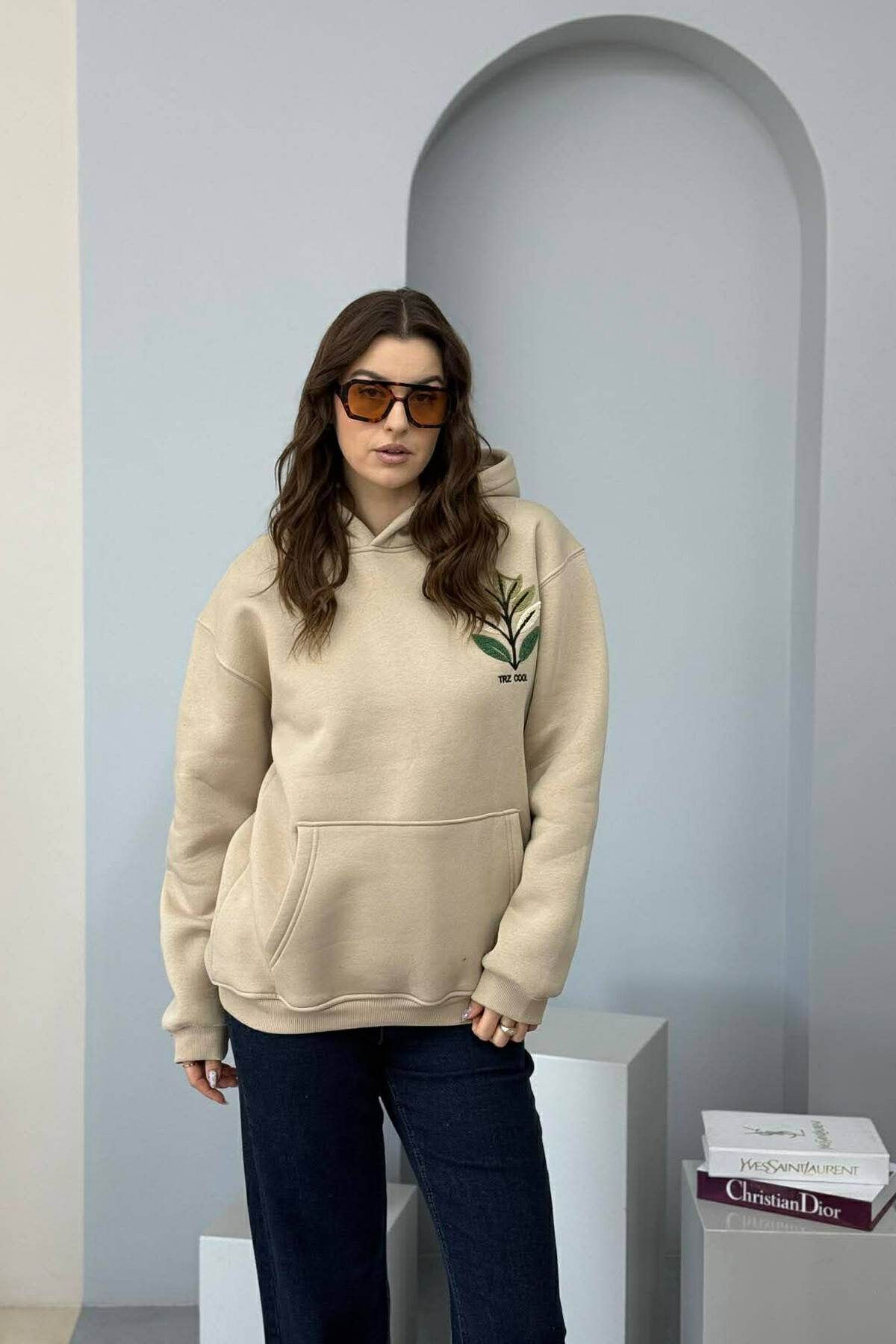 HOODIE ME PUSH DHE ME DIZJAN NE PJESEN PARA & PAS PER FEMRA NE NGJYRE BEZHE