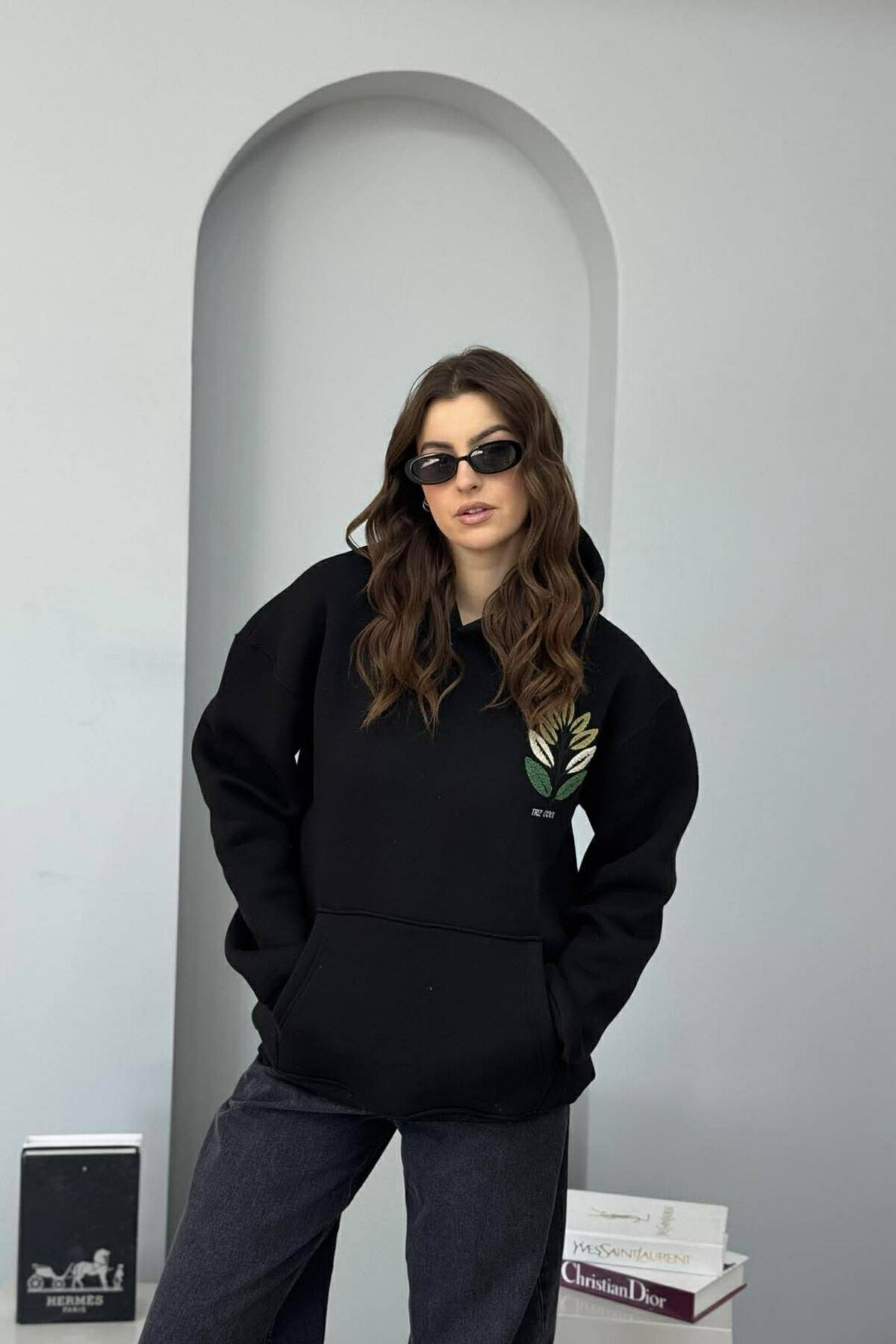 HOODIE ME PUSH DHE ME DIZJAN NE PJESEN PARA & PAS PER FEMRA NE NGJYRE TE ZEZE