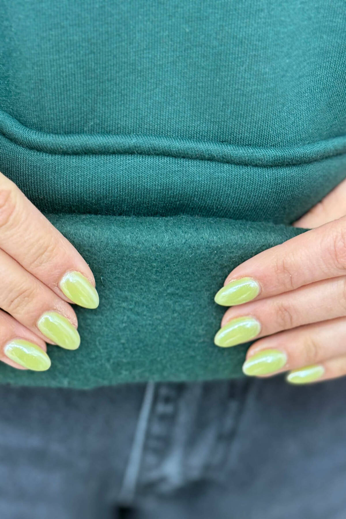 HOODIE NJE NGJYRSHE ME PUSH DHE ME SHKRIM NE PJESEN PARA PER FEMRA NE NGJYRE TE VERDHE