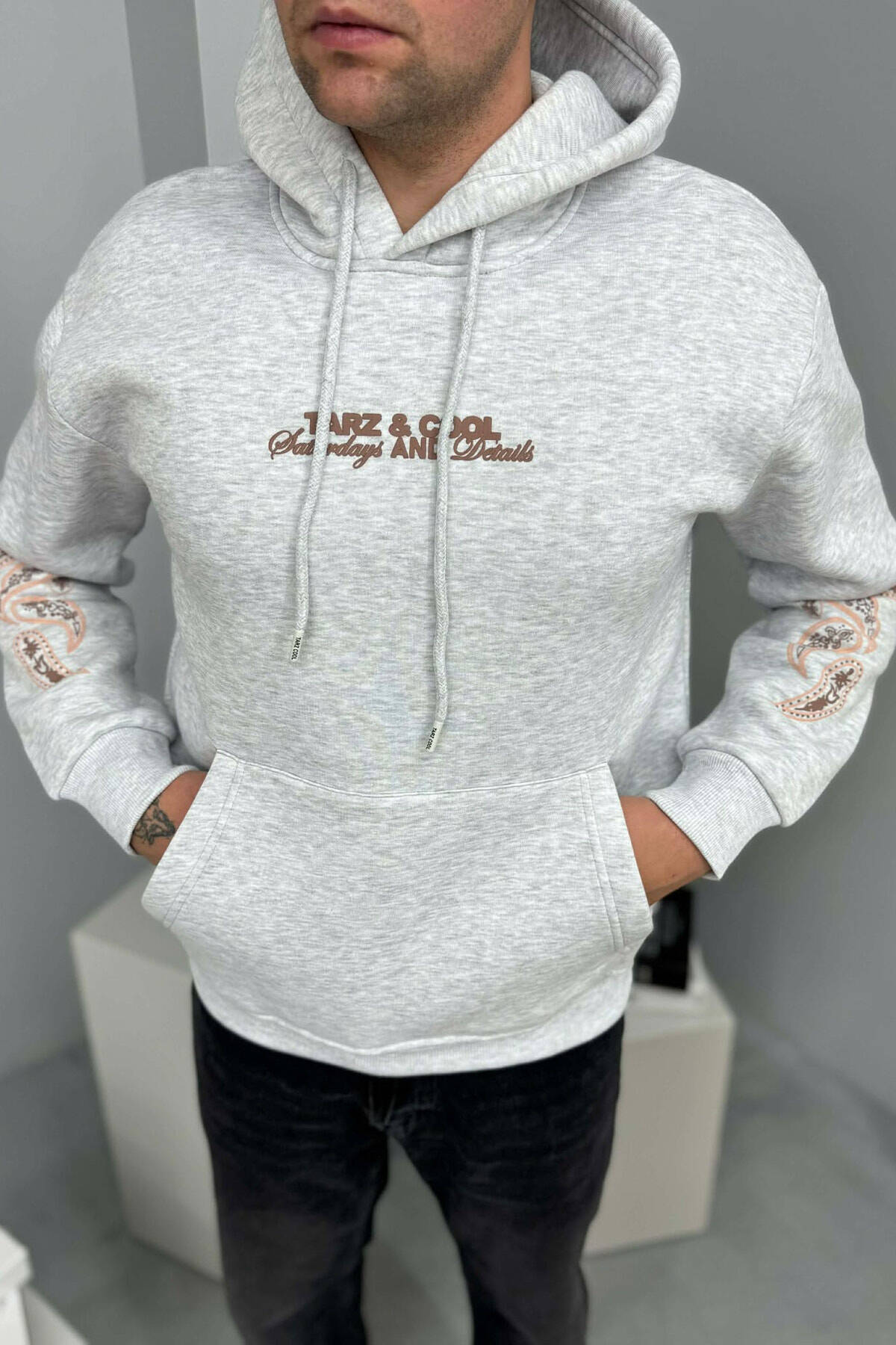 HOODIE ME PUSH DHE ME SHKRIM PARA PËR MESHKUJ NË NGJYRE GRI TE ZBARDHUR