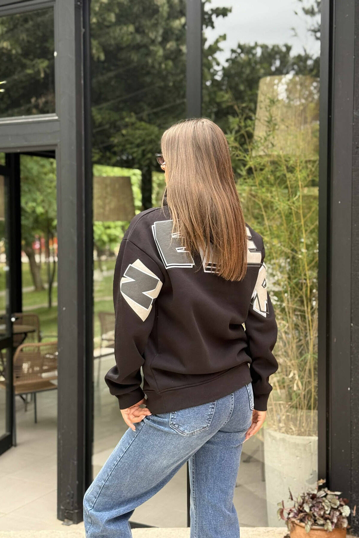 HOODIE ME PUSH ME SHKRIME NË PJESEN E PASME PËR FEMRA NË NGJYRË TË ZEZË